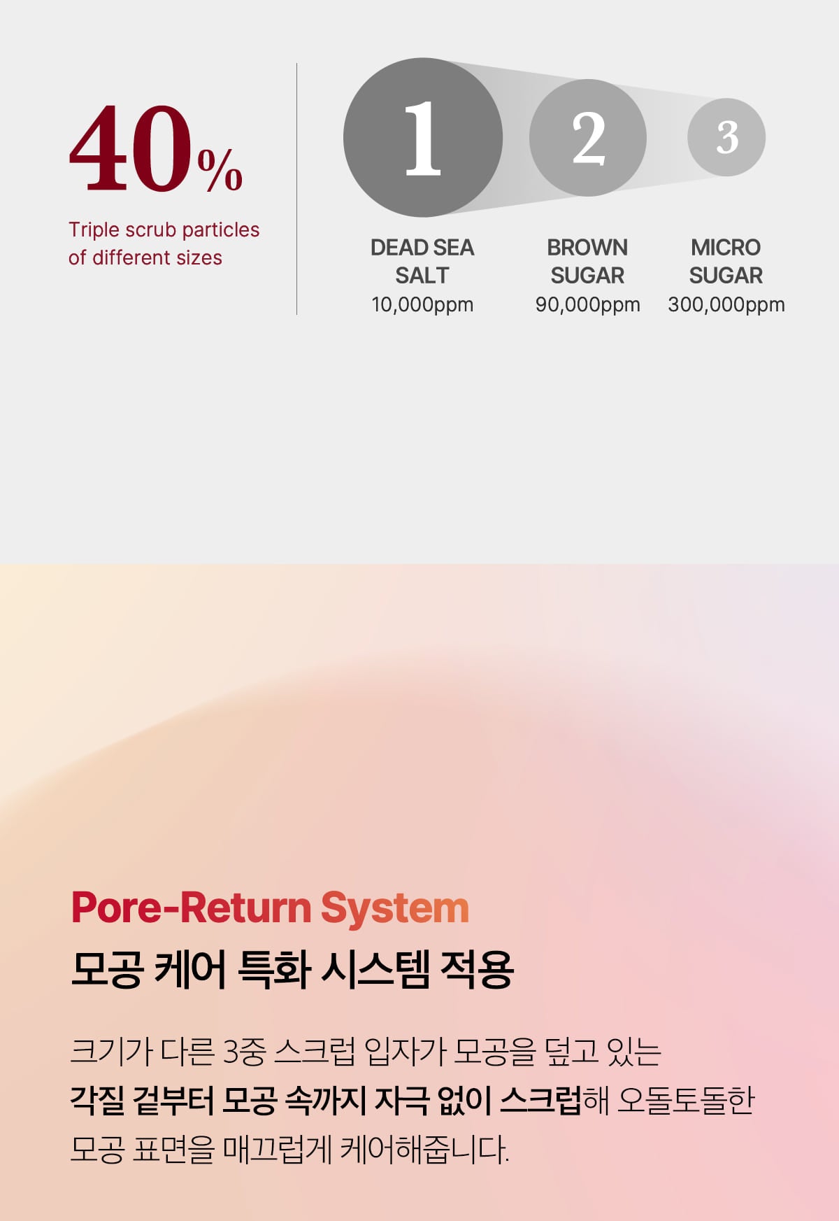 Triple Scrub Particles: Crafted with Micro Sugar, Brown Sugar, and Dead Sea Salt, this scrub offers a spectrum of particle sizes for comprehensive exfoliation. It targets everything from surface debris to deep-seated impurities, ensuring minimal irritation and maximum exfoliation.