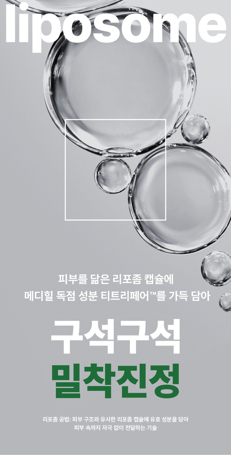 Liposome capsules resembling skin are filled with Mediheal’s exclusive ingredient Teatreefair™ to calm the skin.