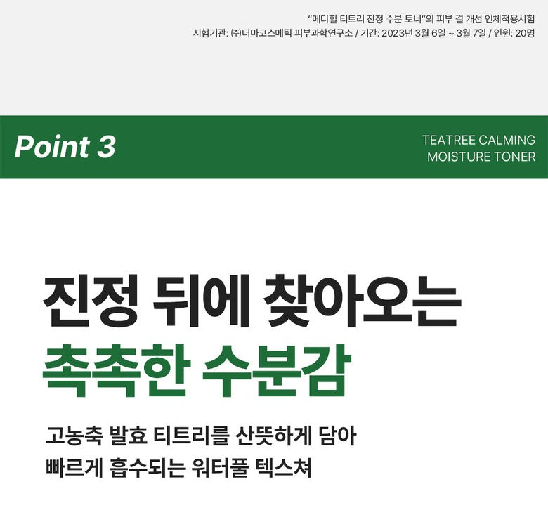 A soothing solution that is comfortable for the skin and is filled with tea tree fermented at the optimal temperature for 72 hours.