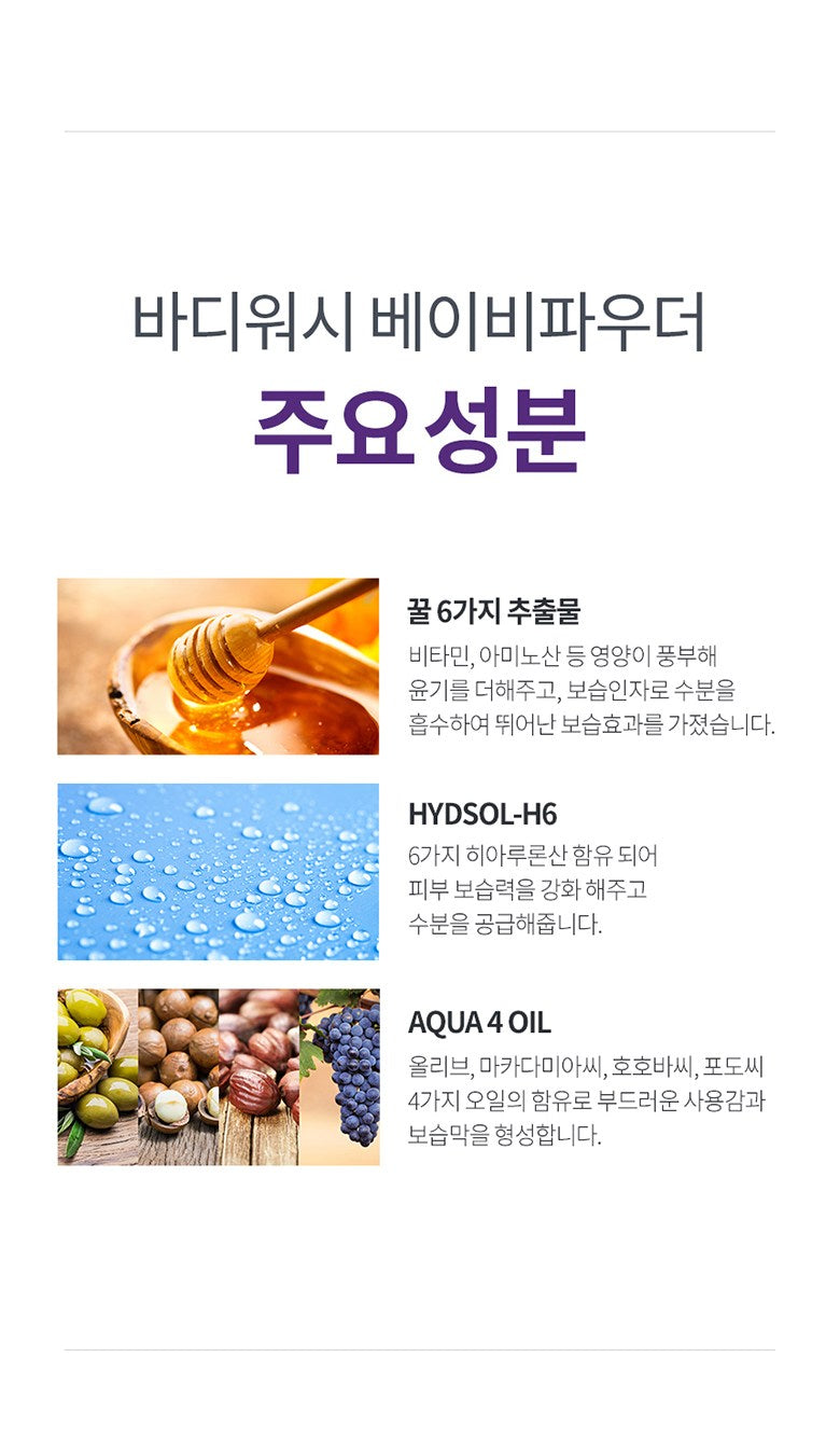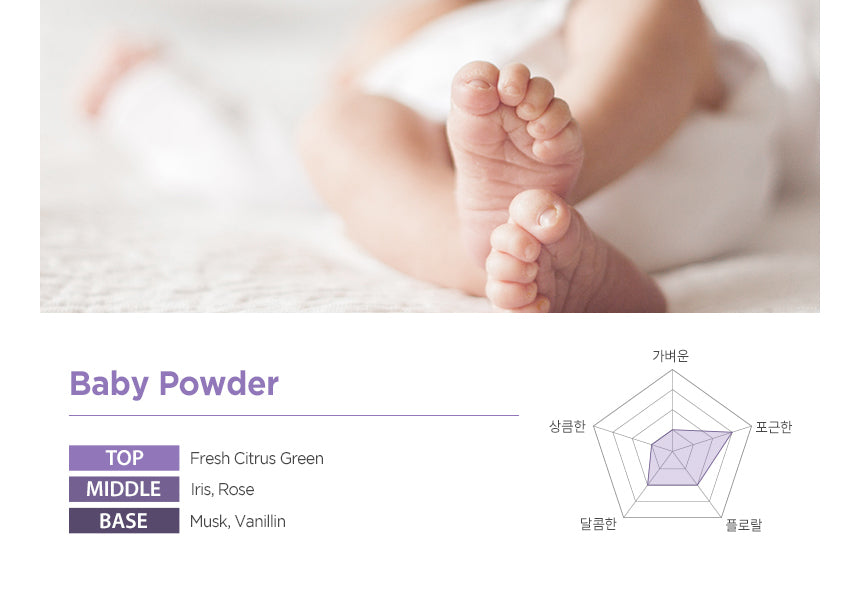 * Baby powder scent that lasts for a long time on moist skin with moisture