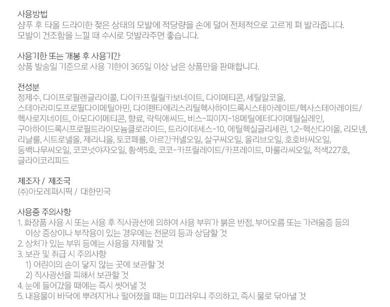 After shampooing, put an appropriate amount of this product on your wet hair after towel-drying with your hands and spread it evenly. It is recommended to apply it frequently when your hair feels dry.
