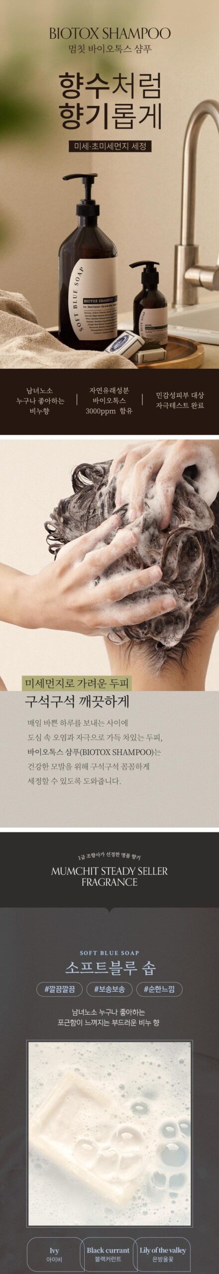 Our users rave about the long-lasting capacity, the rich foam, and the delightful scent. The Soft Blue Soap fragrance is a particular favorite, widely used in other MUMCHIT products like fabric perfumes, body lotions, and body mists.