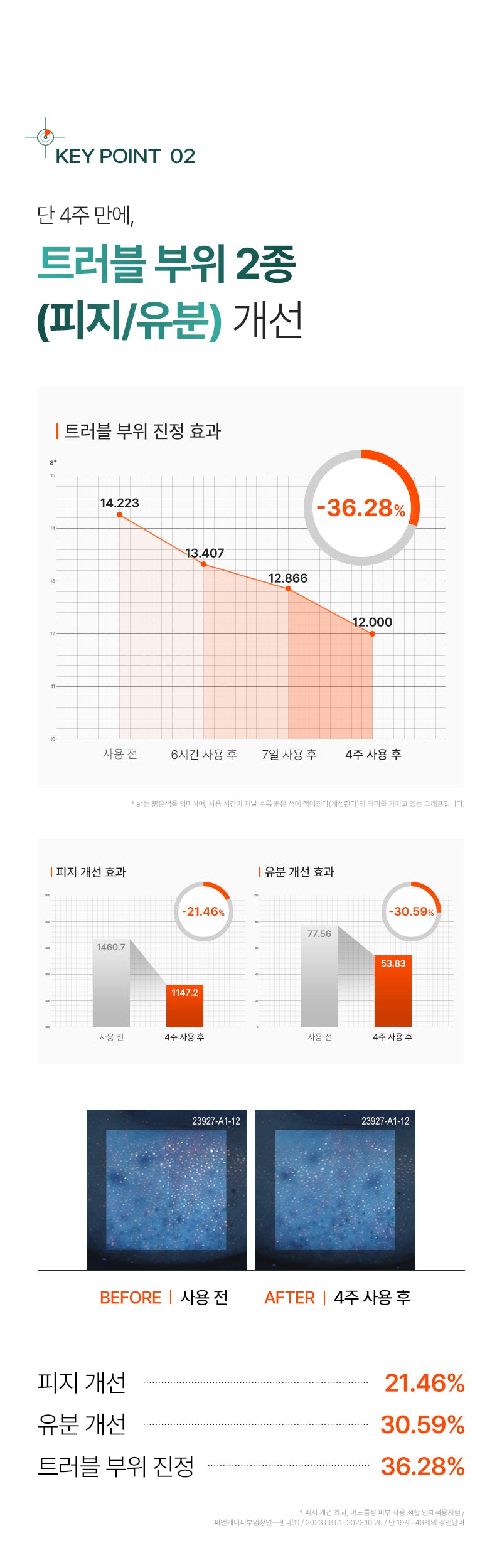 • Long-Term Improvement: In just 4 weeks, it significantly reduces sebum and oiliness in troubled areas.
