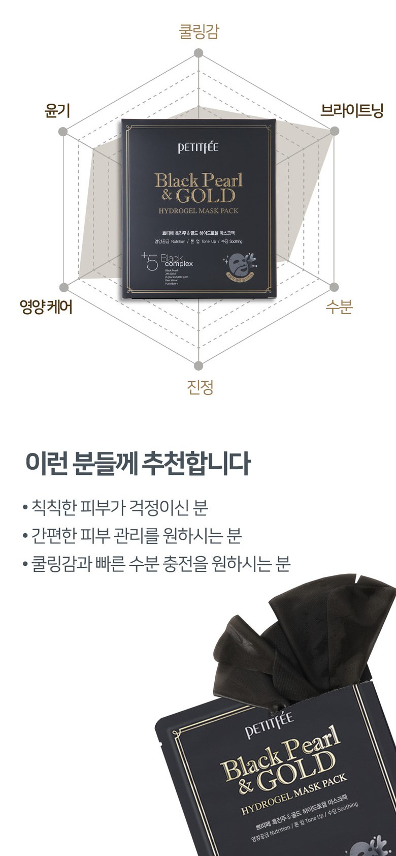 - Black pearl extract hydrates your skin and effectively removes tan and focus on brightening the dull skin.