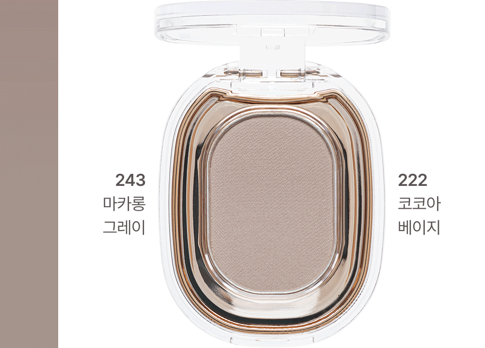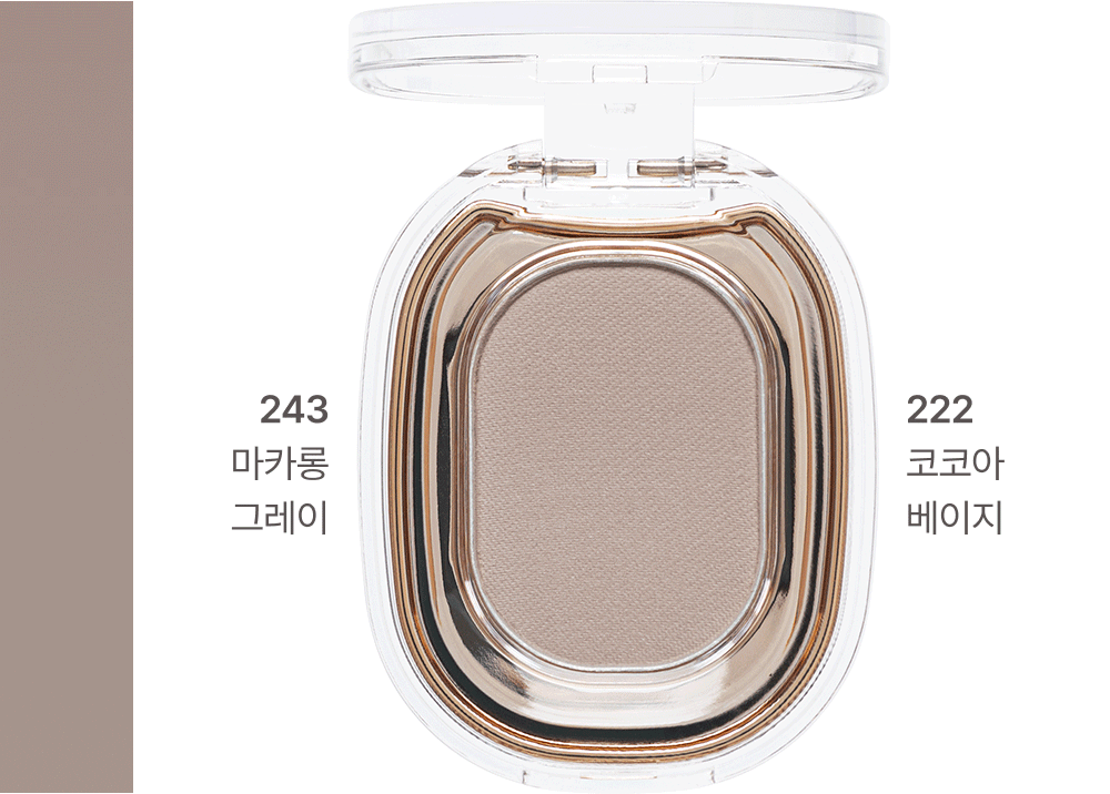 - A neutral gray-brown with a touch of pink for a naturally blended effect