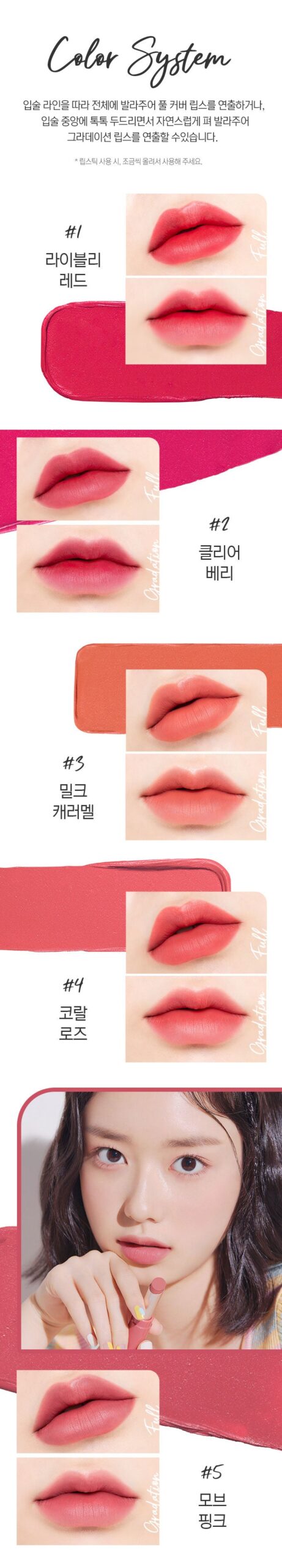 Achieve beautiful, long-lasting lip color with the ETUDE Fixing Tint Bar, your go-to product for both full and gradient lip styles.