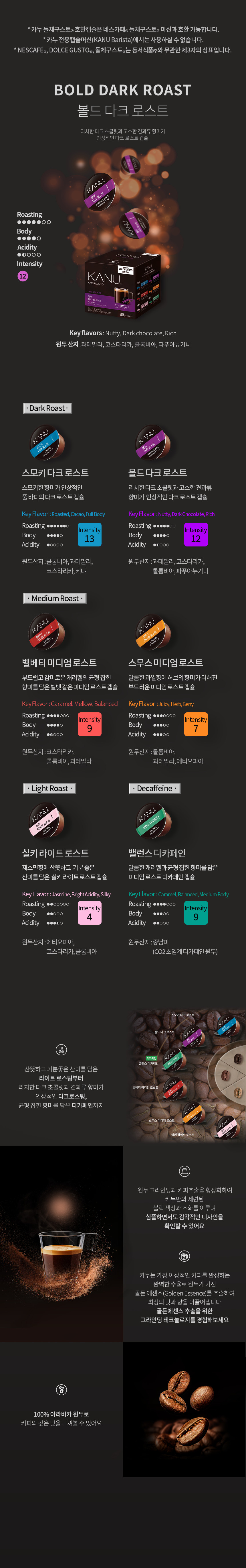 KANU Bold Dark Roast Dolce Gusto Compatible Capsules deliver an intense, full-bodied coffee experience with rich dark chocolate notes and nutty undertones. This premium Korean instant coffee brand brings café-quality espresso to your home with convenient Dolce Gusto compatible capsules. With an intensity level of 12, this bold roast satisfies coffee lovers who crave a strong, robust cup every time.