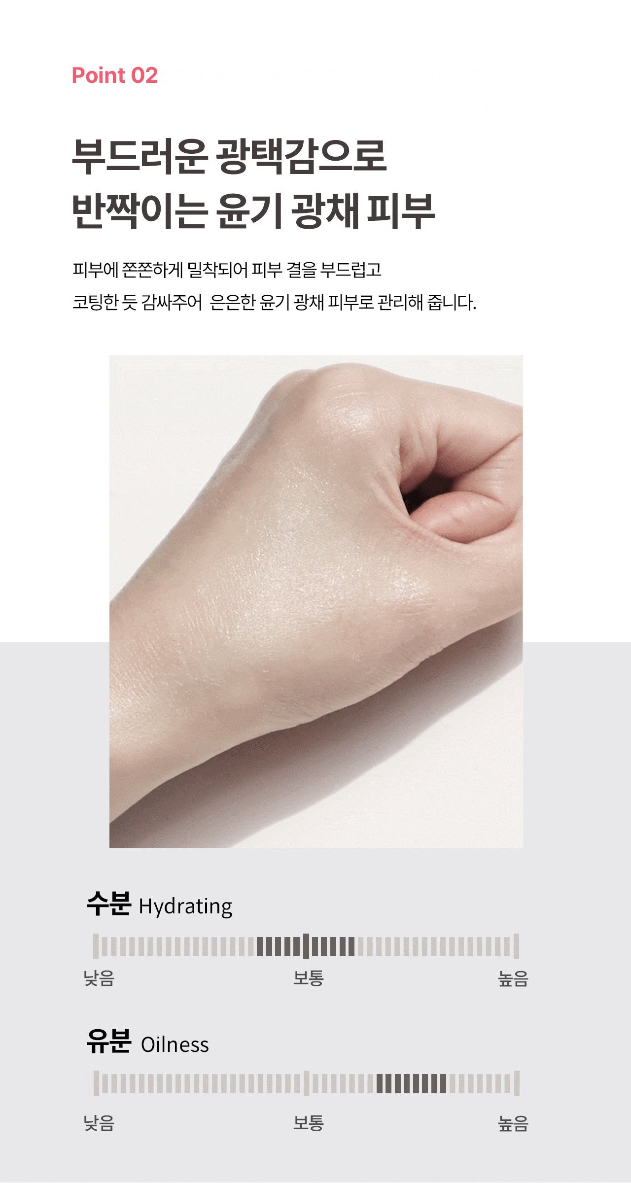 : Adere firmemente à pele e envolve a textura da pele como se estivesse revestida suavemente, deixando a pele com um brilho sutil.
