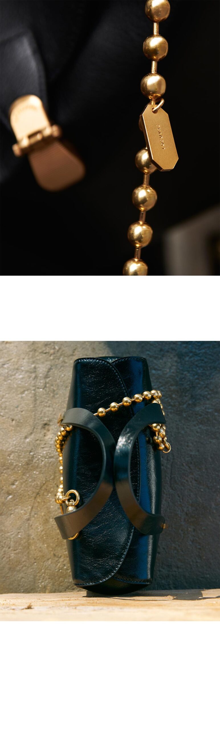 The ‘Chain of Raindrop’ is an innovative chain handle, distinct from traditional designs. It features a bead motif reminiscent of quiet raindrops falling in the early morning. This handle combines the volume of a dog ring with a logo pendant, showcasing the Louvre’s signature style — simplistic yet edgy.