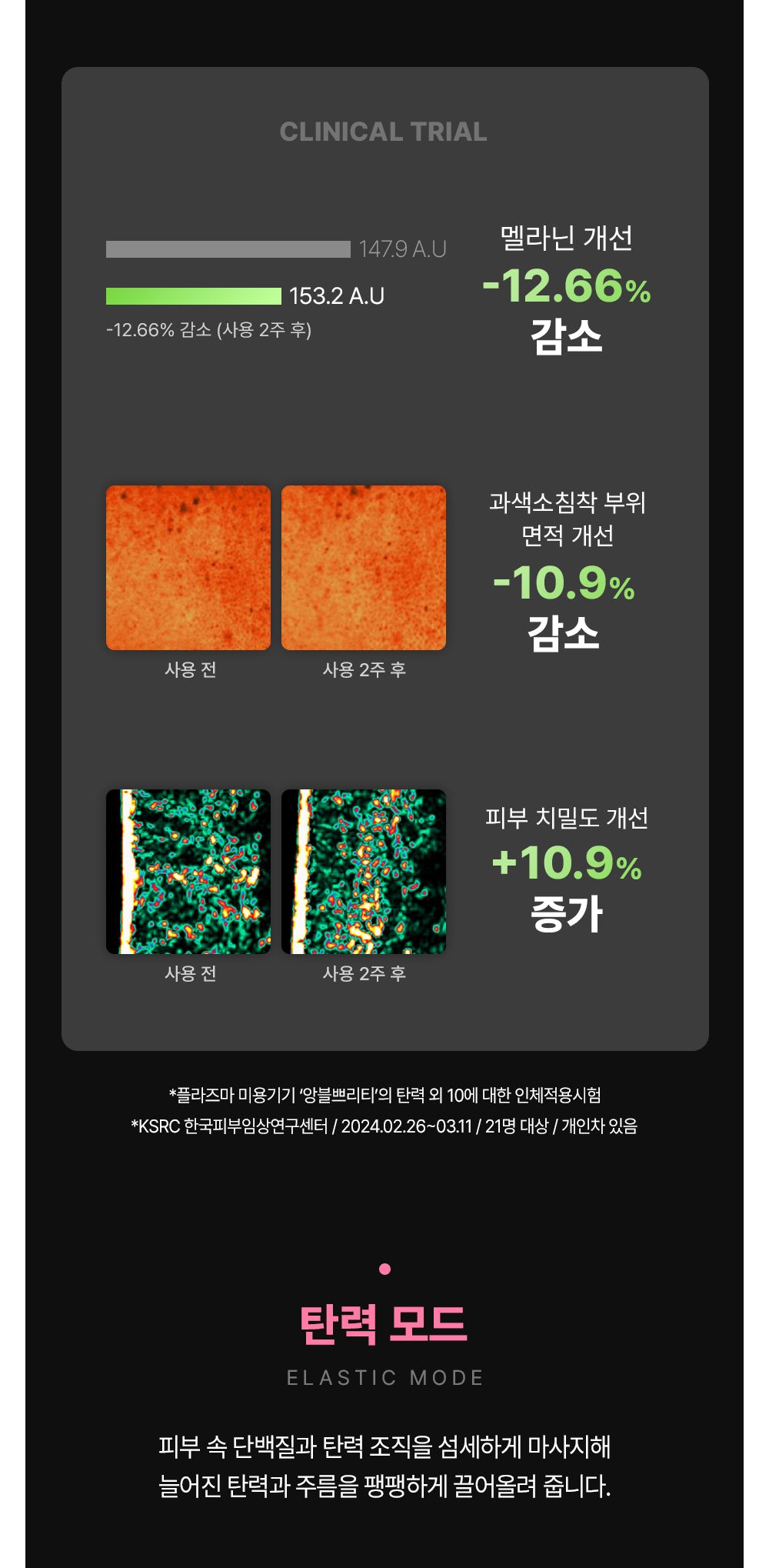 - Improves melanin index and skin density.