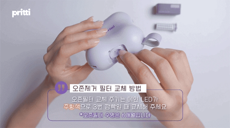 - Replace the ozone filter after 30 hours of usage or when the LED indicator blinks orange.