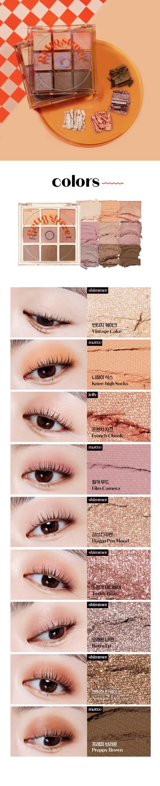 Enveloped in nostalgic echoes of the early 2000s, ETUDE Play Color Eyes #Retro Street unfurls like a daydream dripping with whimsical delight. The palette invites users into an artistic realm—each hue reminiscent of faded postcards collected from an adventuresome summer spent wandering lively streets, beneath sun-drenched skies. I marvel at how easily these jewel-like shades translate between cultures; dazzling enough for a festival celebration in Rio or understated elegance during sunset in Tokyo’s Shibuya district. Matte finishes bring depth while shimmers evoke enchanting tales—all kissed by a sense of luxury found in vibrant street corners around Seoul. As delicate particles settle across eyelids, it feels as though my makeup artistry bridges timelines and travels through uncharted memories.