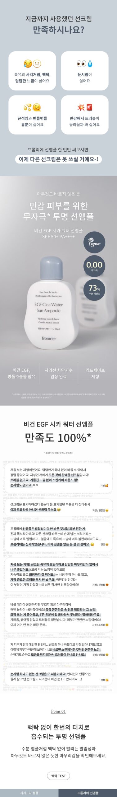 At first, I was quite hesitant about trying the fromrier Vegan EGF Cica Water Sun Ampoule. After all, a product claiming to combine vegan ingredients with high SPF always raises some skepticism for me—how could it possibly perform without compromising texture? However, once applied on my skin in Toronto’s humid climate during these sweltering summer days, I became pleasantly surprised. The ultra-thin moisture film genuinely offered an invisible shield of sun protection while keeping that fresh glow alive! Coupled with its promise of soothing irritation and hydrating deeply—a tall order usually filled by more creamy products—it struck gold in both categories. Worth every penny.