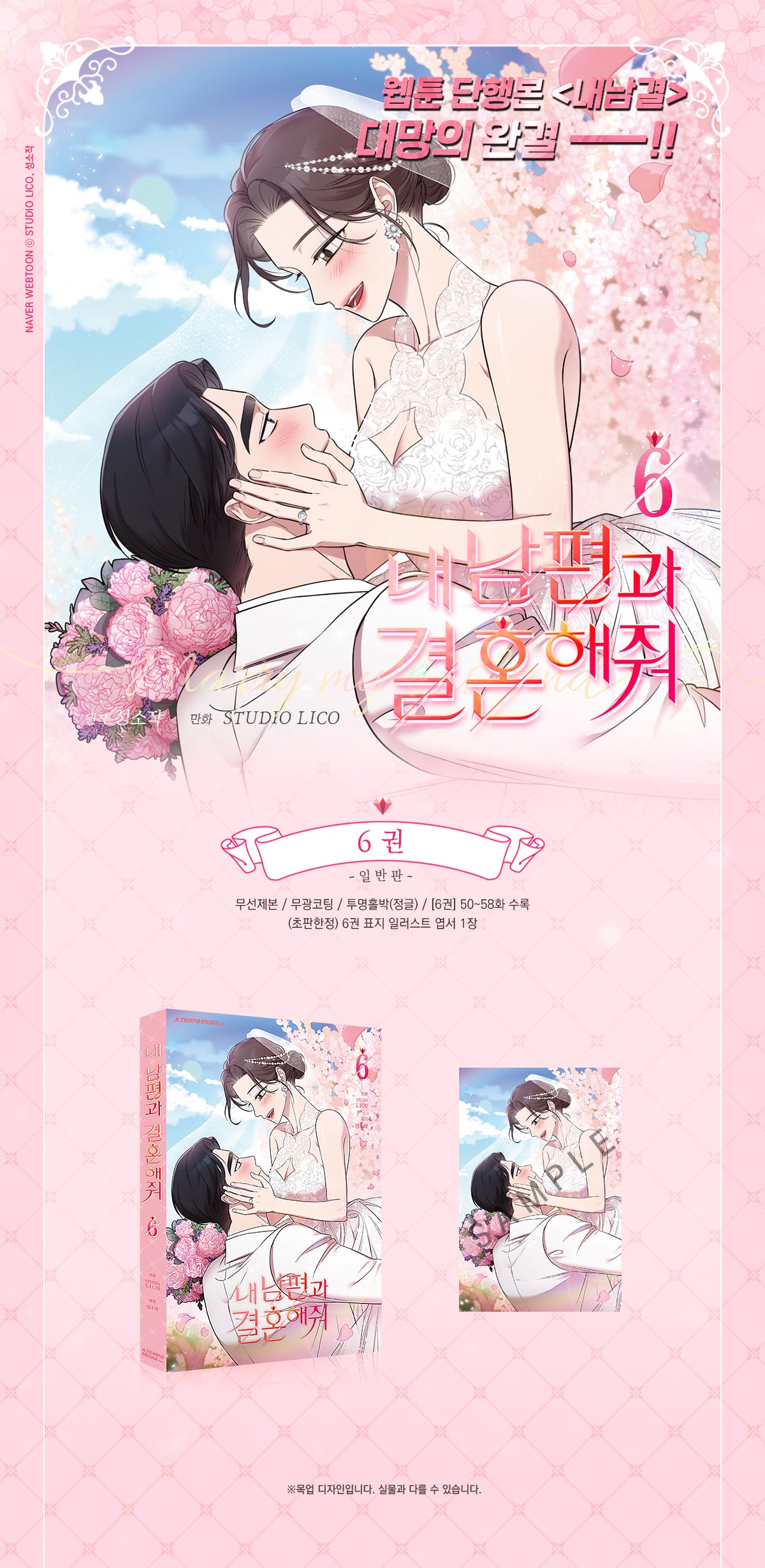 Explore the latest installment of the beloved webtoon series, now available in a physical format! The original web novel [My Man-gyeol] that inspired the popular drama brings you 『Marry My Husband』 Volume 6.