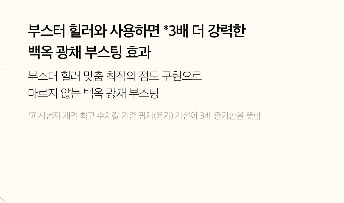 Increased Radiance: Glutathione’s boosting effect on white jade radiance is amplified three-fold when used with our Booster Healer, providing an unmatched glow that permeates every skin layer.