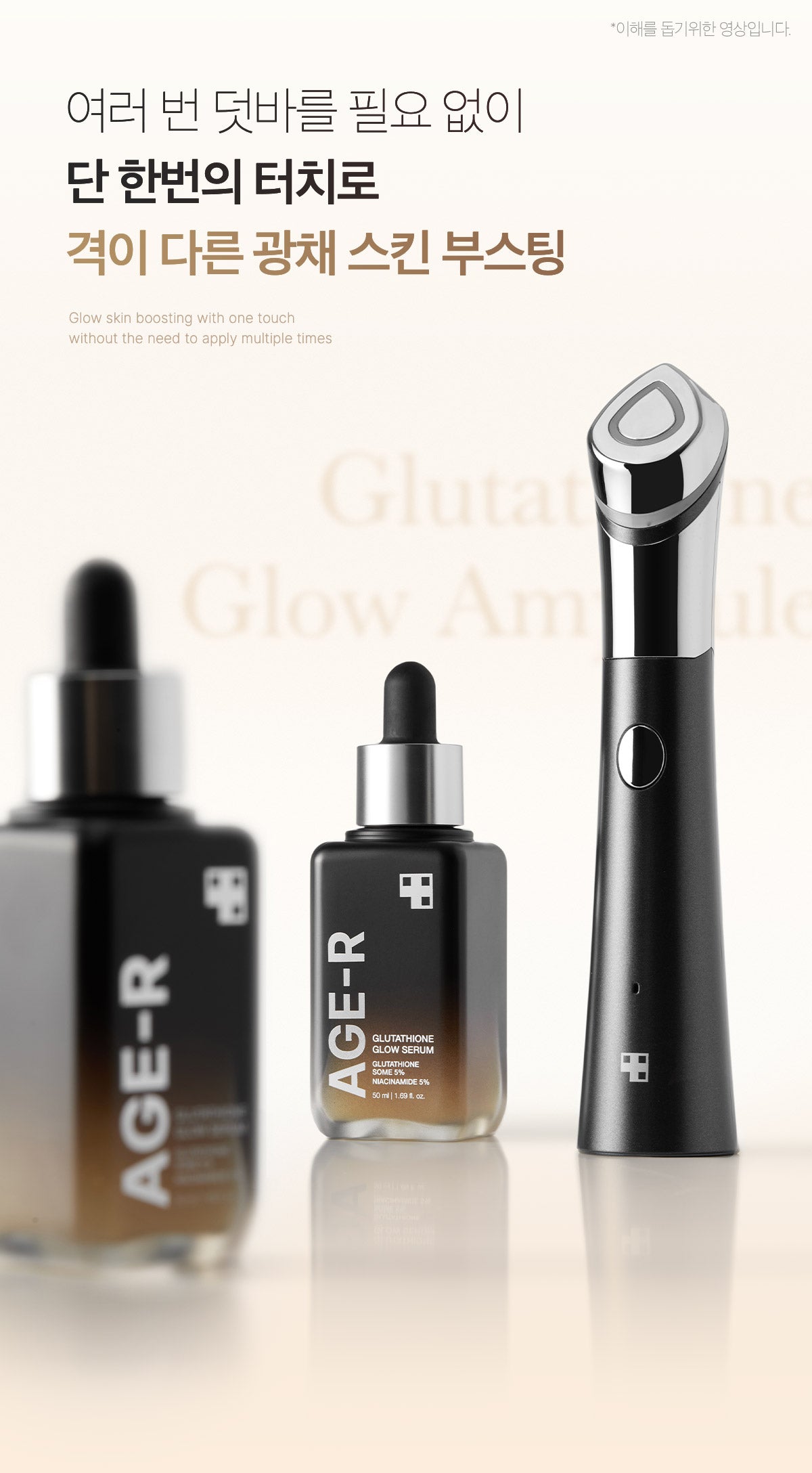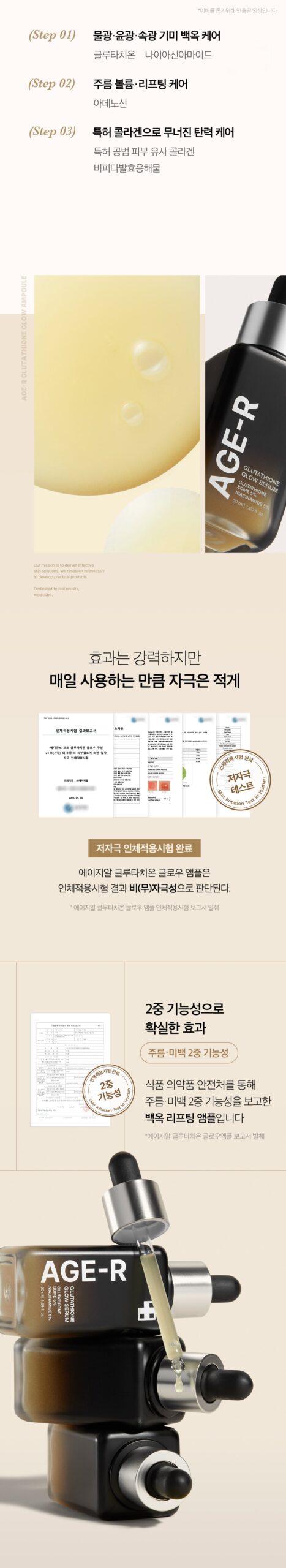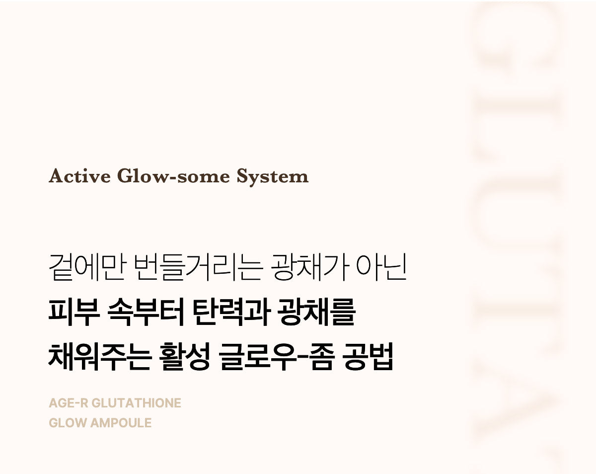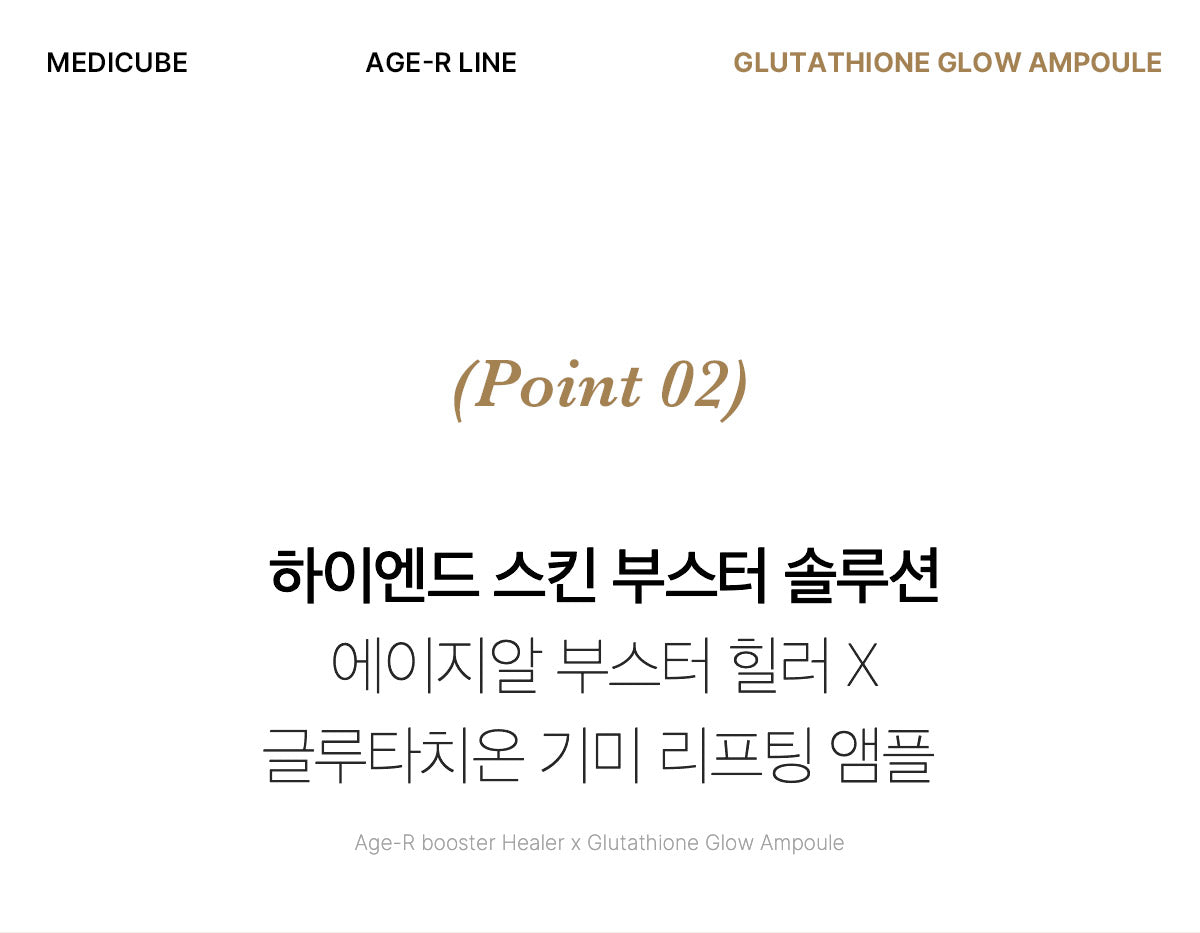 AGE-R’s Glutathione Serum is a high-end skin booster containing high-purity glutathione. This serum enhances your skin’s radiance and elasticity, layer by layer, using our patented active glow-some method.
