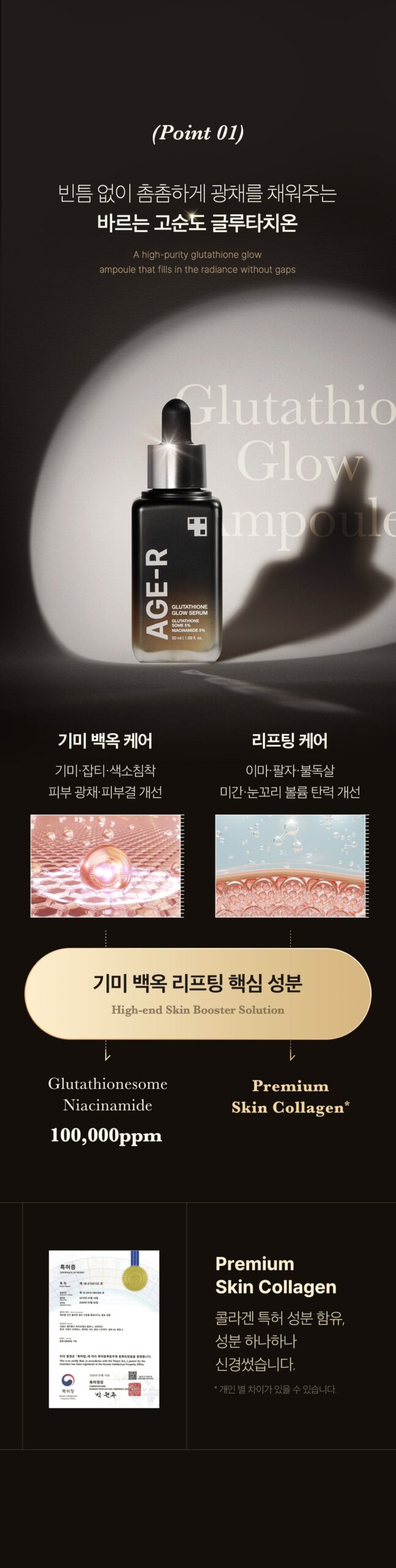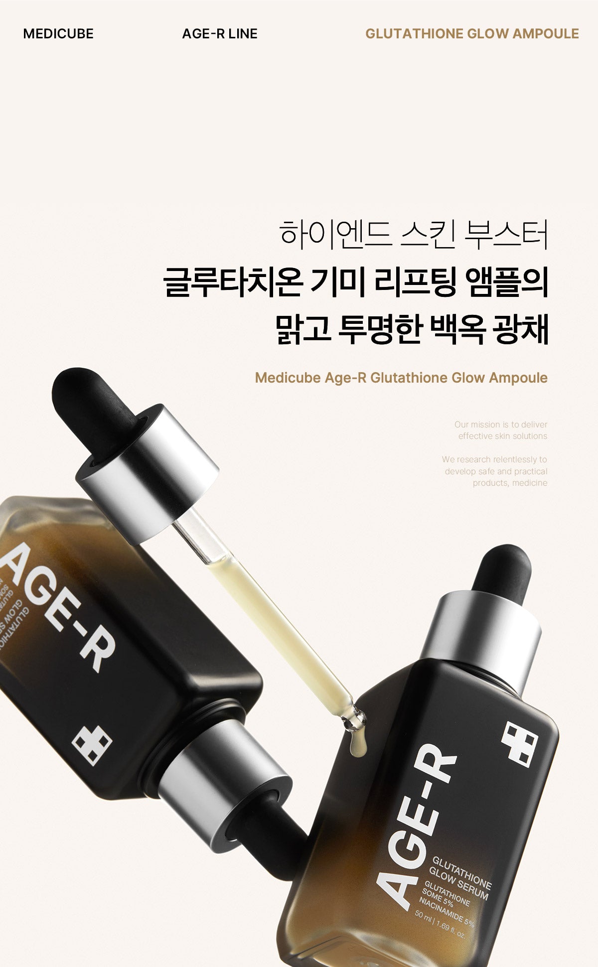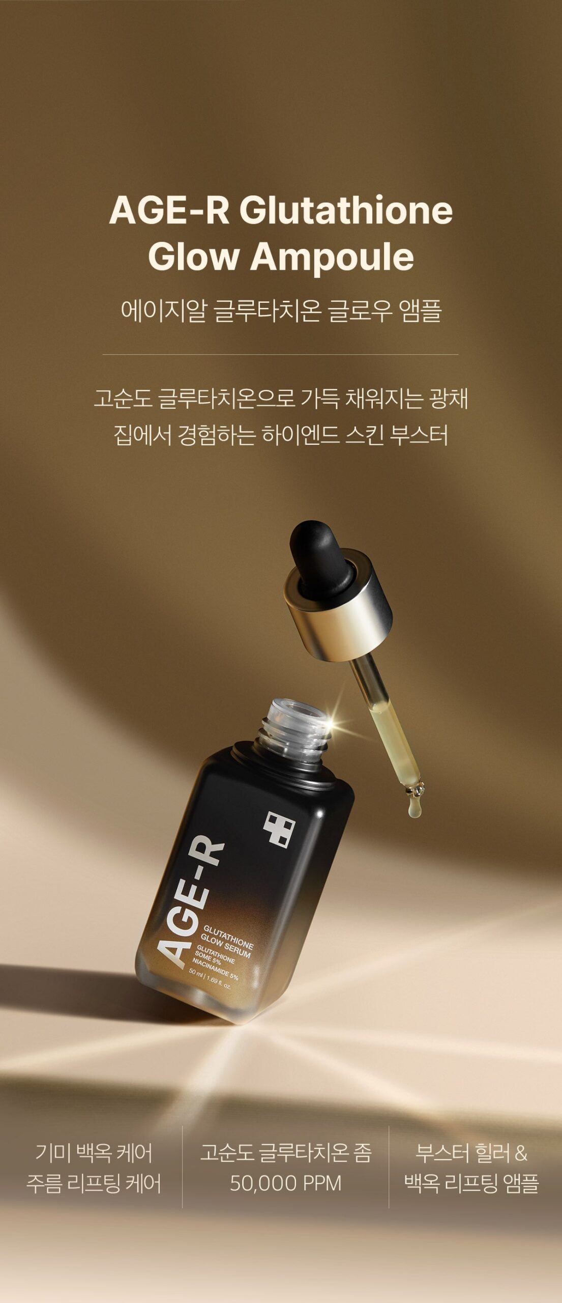 AGE-R’s Glutathione Serum is a high-end skin booster containing high-purity glutathione. This serum enhances your skin’s radiance and elasticity, layer by layer, using our patented active glow-some method.