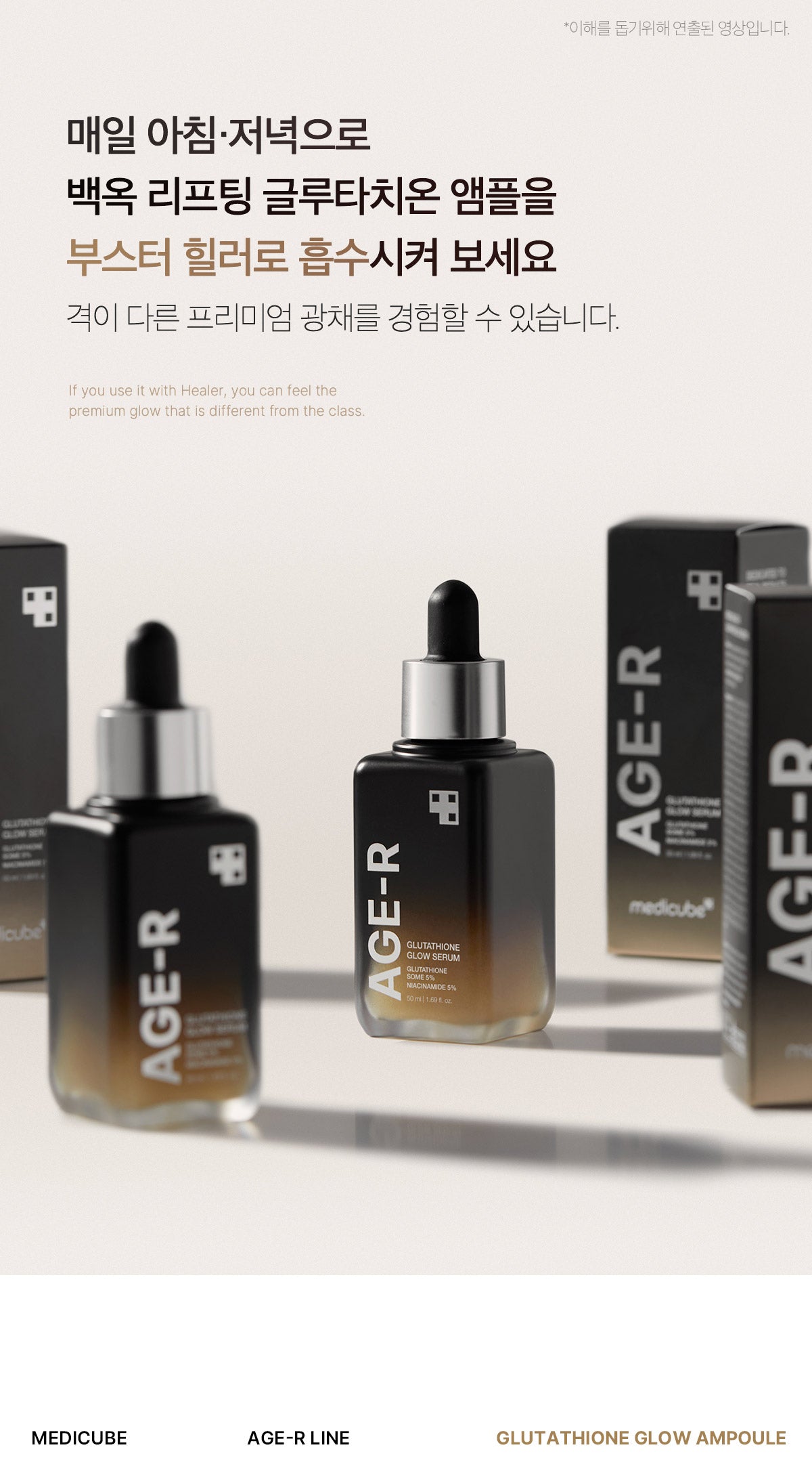For the best results, apply our Glutathione Glow Serum with the Booster Healer every morning and evening. Experience premium radiance on a whole new level.