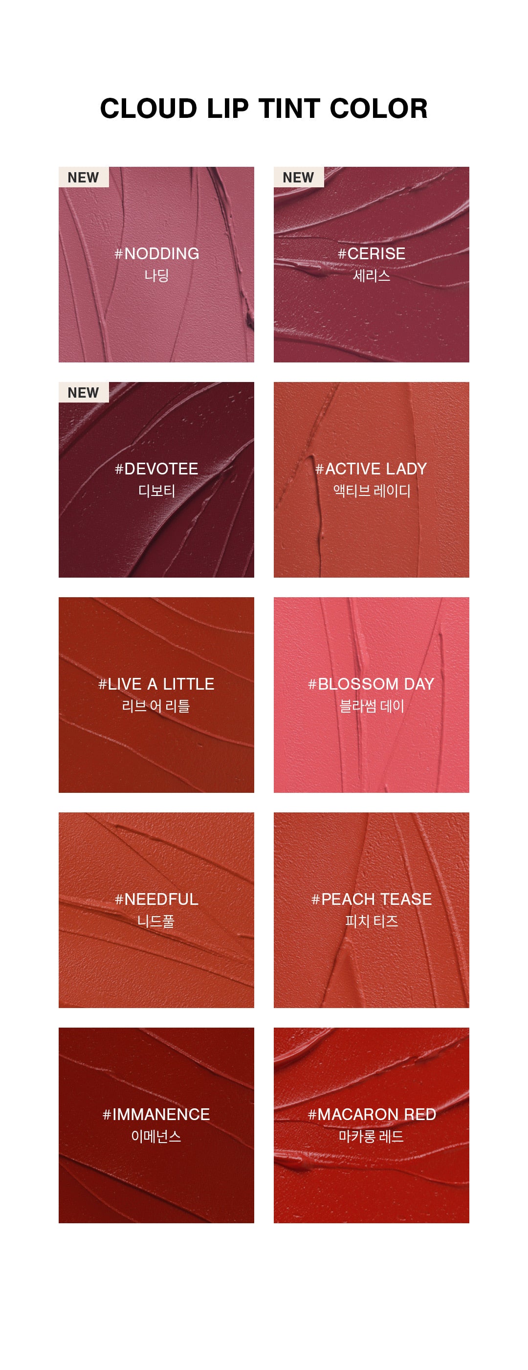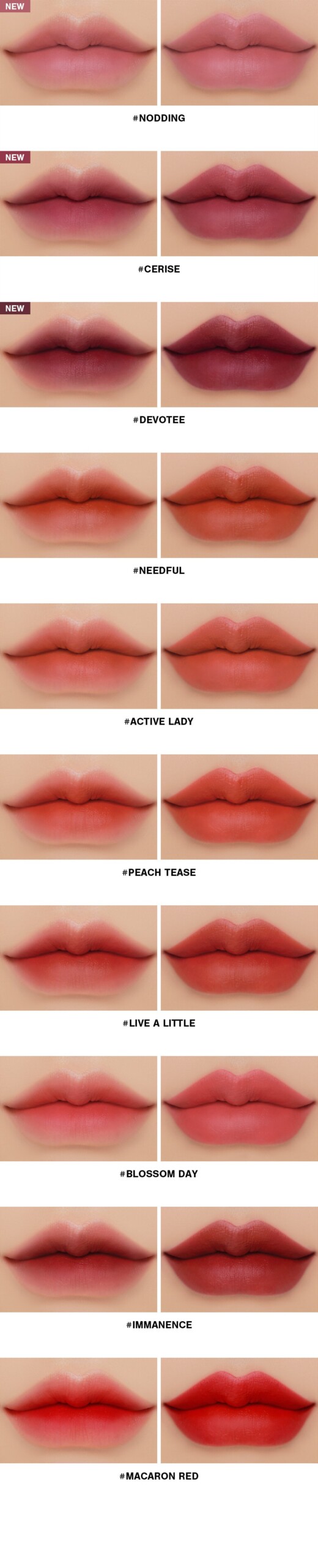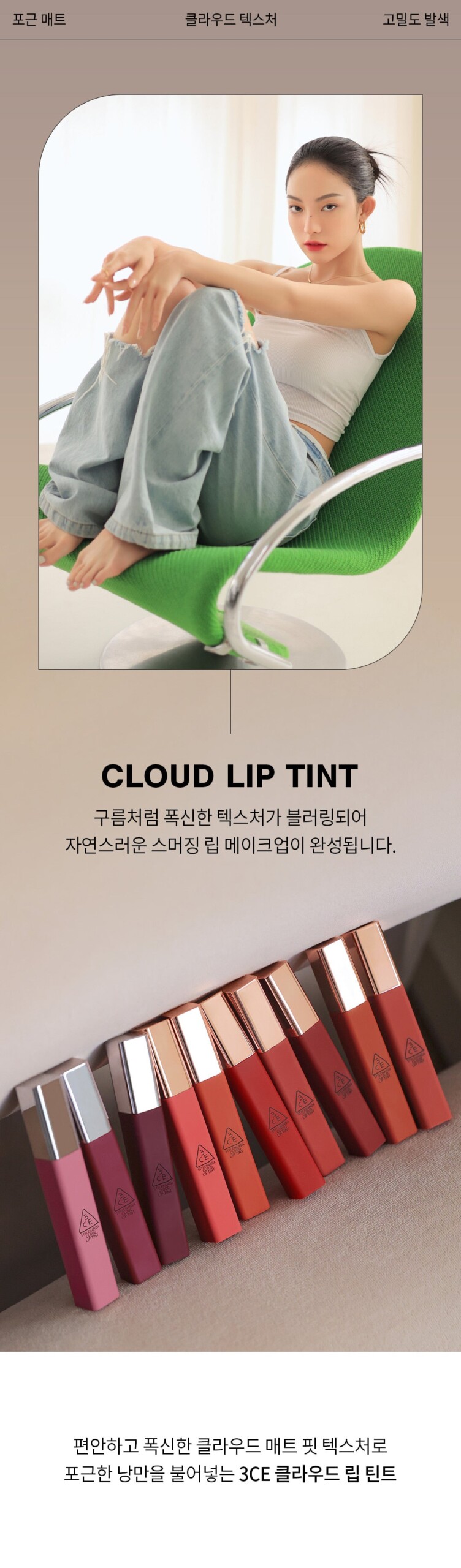 * 3CE Cloud Lip Tint that infuses a cozy romance with a comfortable and soft cloud matte fit texture