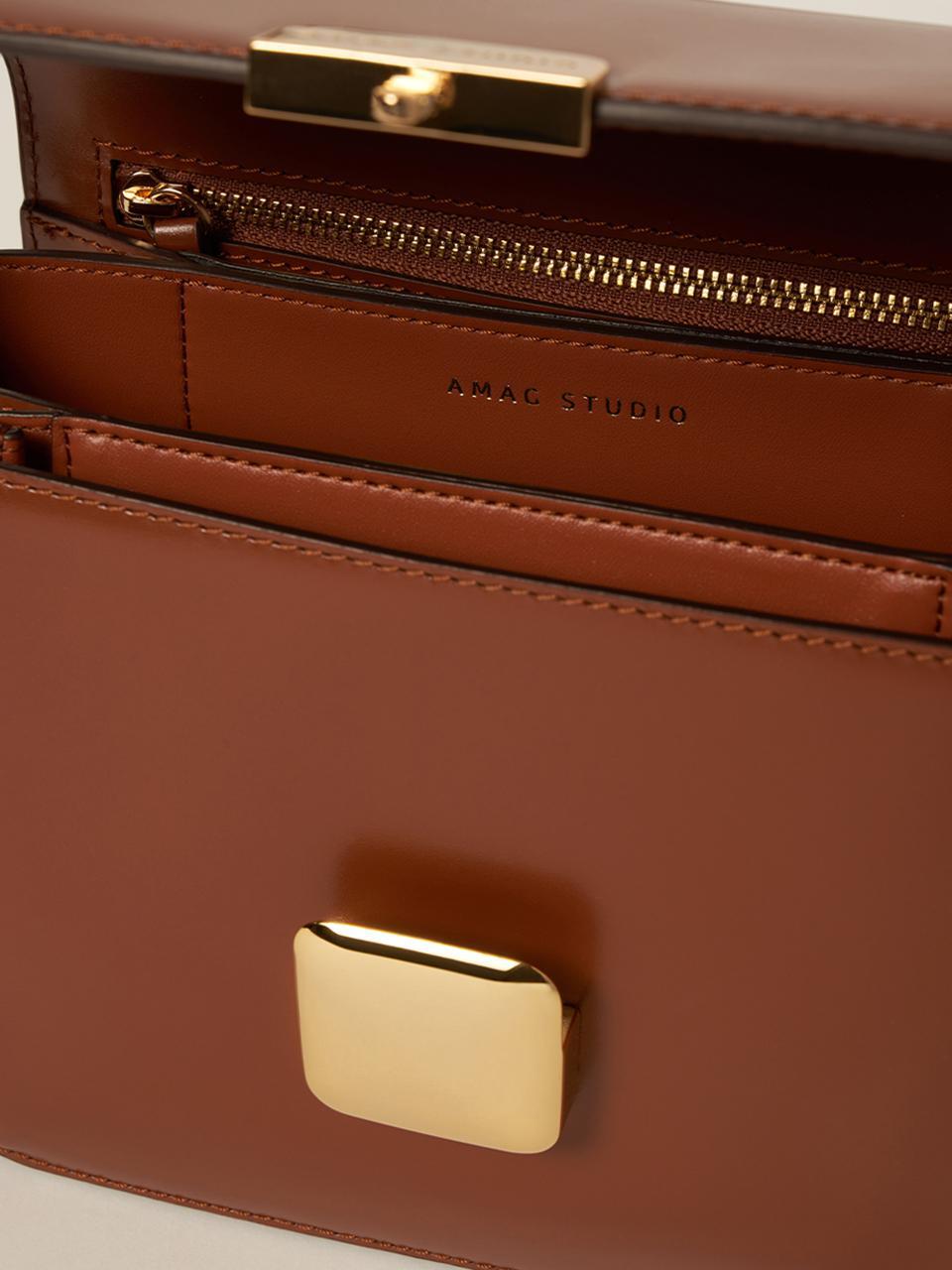 Upon first glance at the AMAG Q Box Small Bag in brown, I wondered whether its minimalist design could truly make an impact amid vibrant trends. Initially skeptical of the boxy silhouette’s appeal and potential usability beyond just aesthetics, I’ve come to appreciate this handbag as both art and practicality woven into one functional accessory. After several outings—from cozy coffee catch-ups to brisk evening walks—it gracefully carried everything from essentials like keys and wallets to a notepad for random inspiration that strikes unexpectedly. This blend of understated elegance with true versatility changed my earlier view: It is indeed possible for minimalism to shine brightly without unnecessary frills or flamboyance.