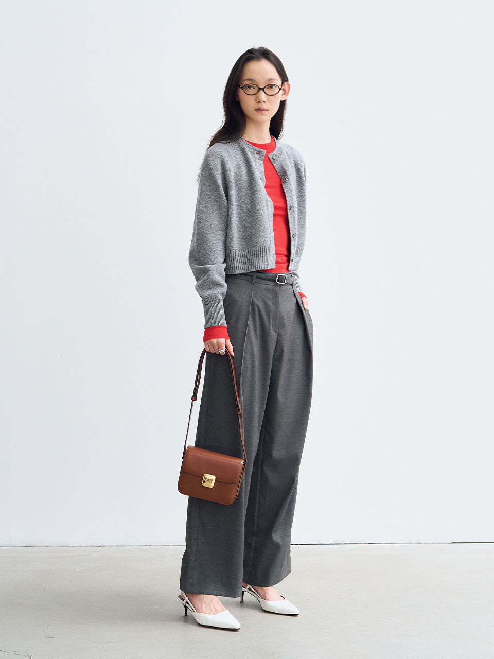 Made from high-quality cowhide leather, this bag features a subtle embossed texture that is resistant to scratches, ensuring durability and long-lasting elegance. The fabric leather lining inside enhances the bag’s refined aesthetic, making it an impeccable choice for those who appreciate minimalism with a touch of sophistication.