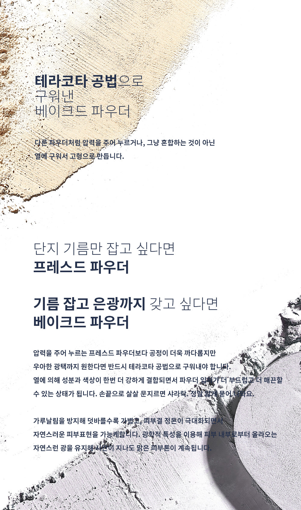 Baked powder baked with terracotta method Like other powders, it is made solid by baking with heat rather than pressing or mixing.