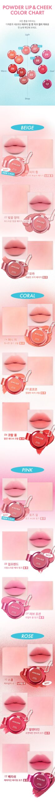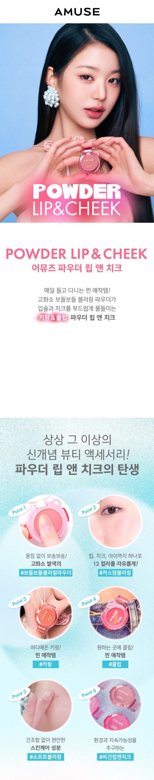 Experience bold, high-resolution color for both your lips and cheeks with the AMUSE Powder Lip & Cheek. This versatile product adheres smoothly to the skin, offering a natural, seamless finish with every application.