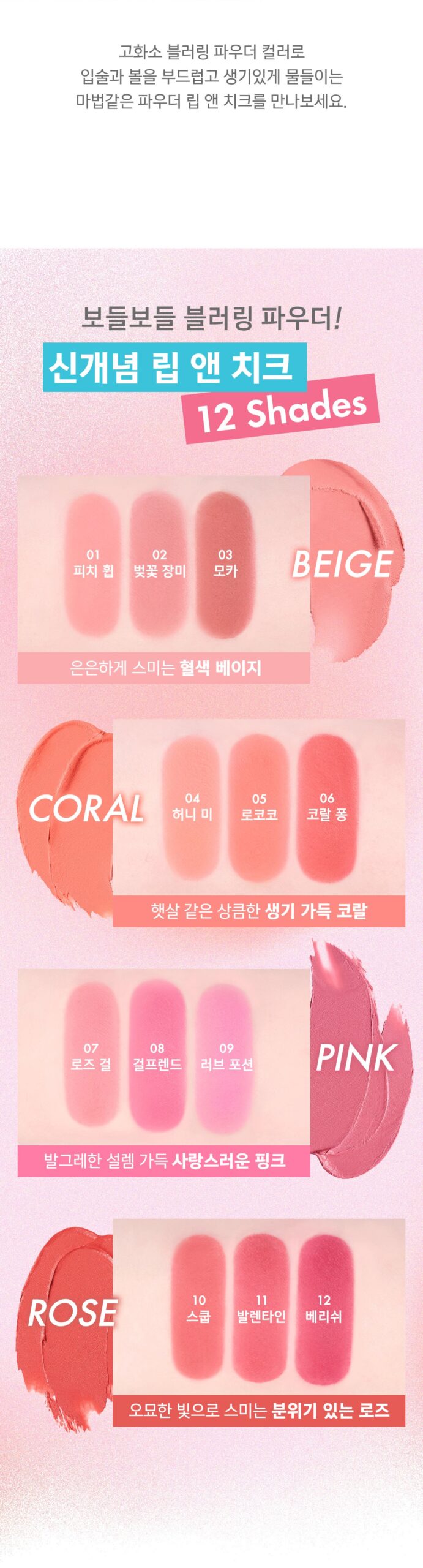 Available in a range of beige, coral, pink, and rose tones, this powder lip and cheek duo allows you to customize your look to match your unique mood or style—perfect for any occasion.