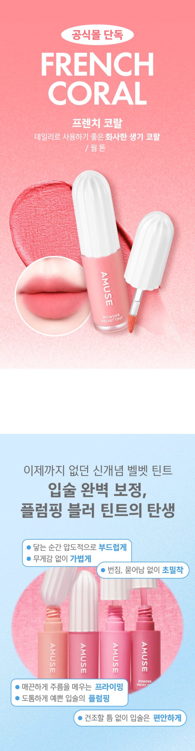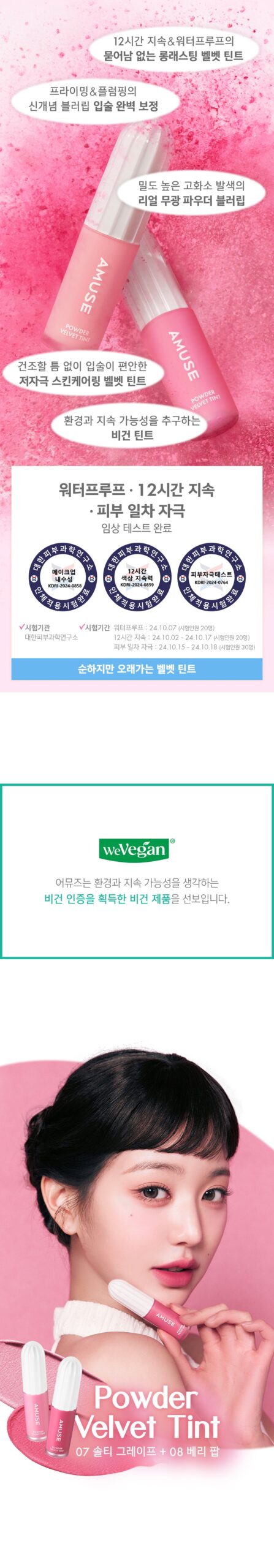 On a summer evening, I tested the AMUSE Powder Velvet Tint at an outdoor concert. With just one application, my lips maintained a fresh pop of color without reapplying once during the three-hour show! Surprisingly comfortable and feather-light—like nothing was on my lips while keeping them perfectly plump with soft edges throughout. Definitely stole the spotlight for me!