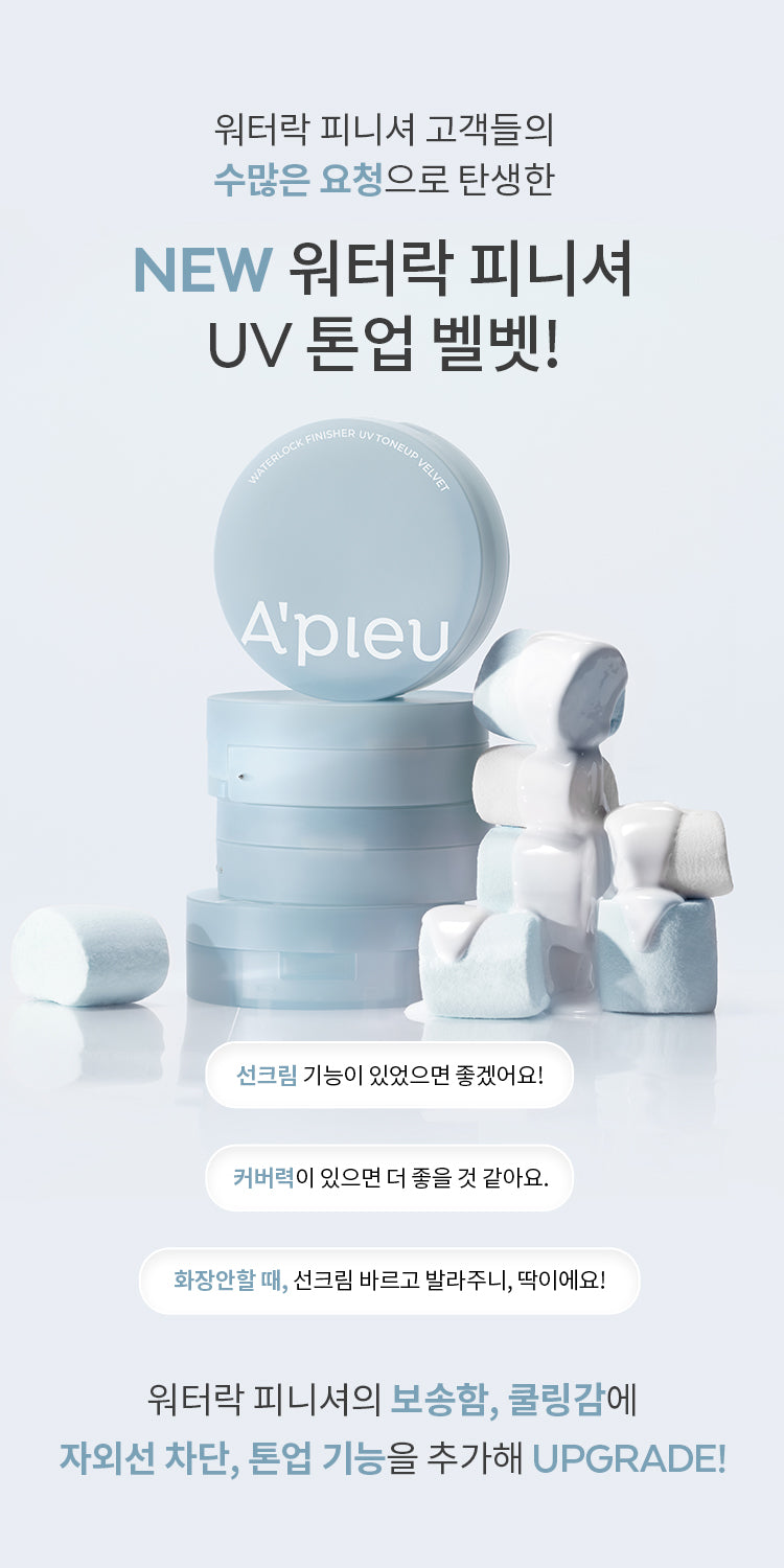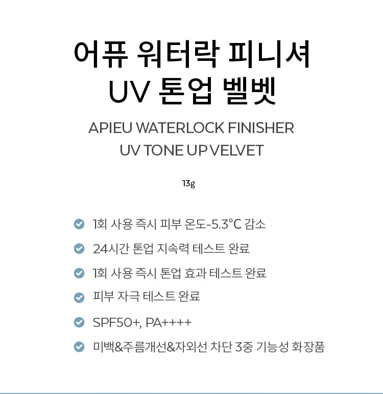Experience next-level tone-up care with the A’PIEU Water Lock Finisher UV Tone-Up Velvet – your all-in-one solution for cool, bright, and matte skin.