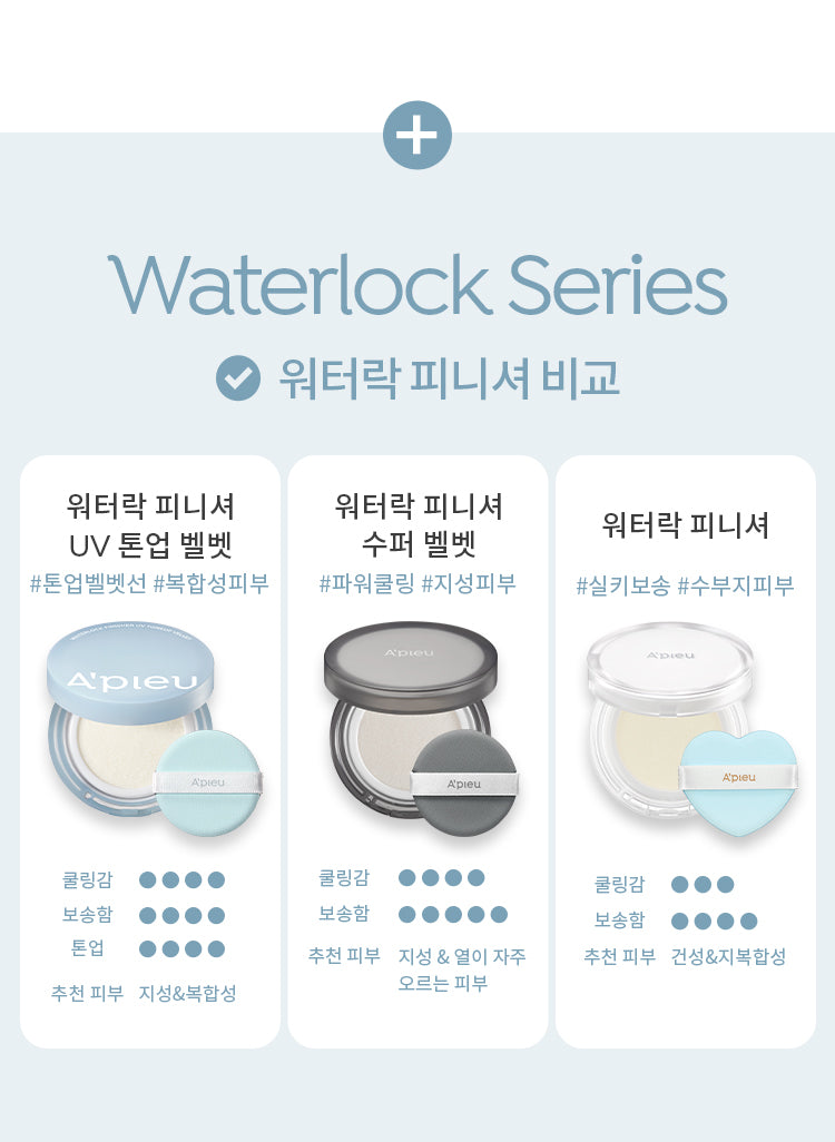 Looking for a product that delivers the oil-controlling power of powder, the hydration of skincare, and the protection of sunscreen—all without the dryness? The A’PIEU Water Lock Finisher UV Tone-Up Velvet is your new go-to. This innovative water-powder hybrid instantly cools and tones up your complexion while locking in moisture and blocking harmful UV rays.