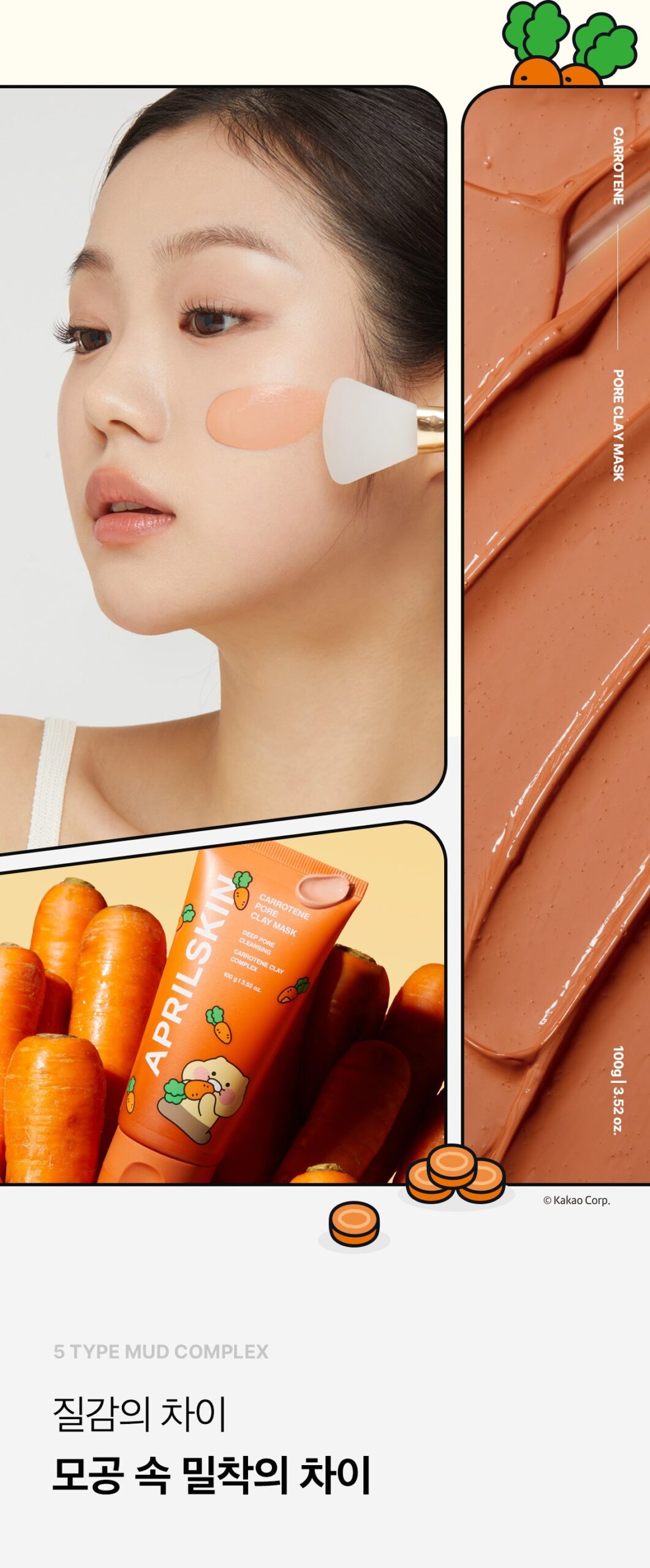 最近、AprilSkinのキャロティーンポアマッドパックを試してみたんだ。まず、その3分間で効果があるところにびっくり!お肌の余分な皮脂や不純物をスッキリ吸収して、すごく滑らかな感触になったよ。その後はメイクもバッチリ決まる感じ。色々な泥成分(特にカナダ産コロイダルクレイ)が入ってて、本当にしっとりなの!これから毎週のお気に入りになるかもしれない!今まで使った中でも結構いいと思う。