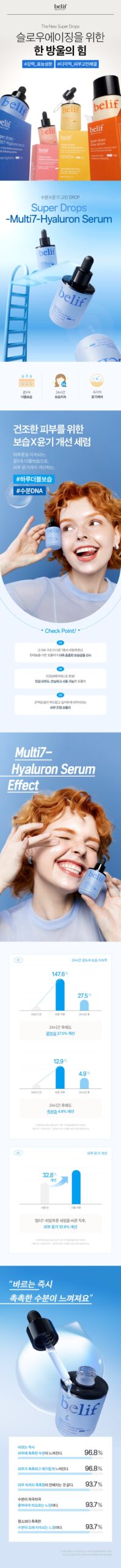 最近、肌の乾燥が気になっていたため、このbelif Super Drops Multi7-Hyaluron Serumを試してみることにしました。保湿力が高いと聞いていましたので期待大です!実際に使ってみると、とても軽やかなテクスチャーで伸びもよく、一瞬で吸収されて驚きました。また、顔全体がしっとりとして見えたことで、自分でも満足できるほどの輝きを得られました。それだけではなく、敏感な肌にも優しいとの事でしたので安心感があります。ただノンシック的なのは最高ポイントですね。数日後には化粧ノリまで良く感じ始めたような…。真剣にお勧めします。