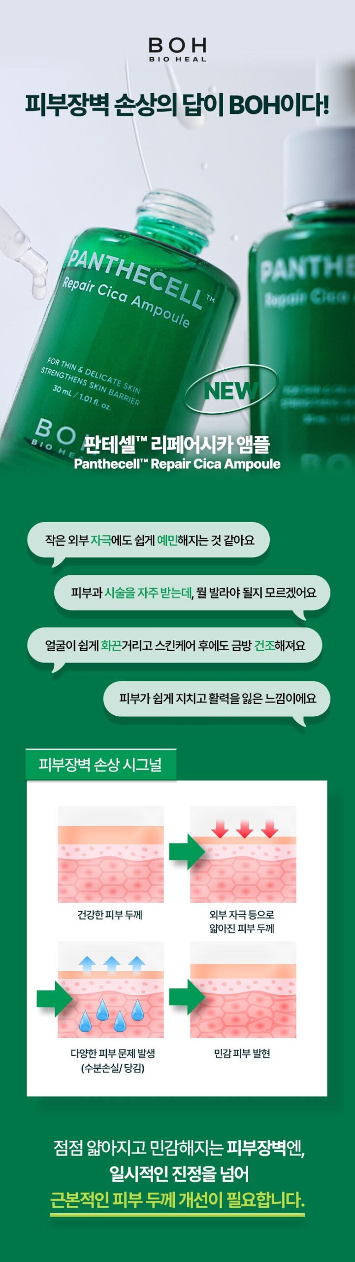 I have been using the BIO HEAL BOH Panthecell™ Repair Cica Ampoule for a few weeks now, and I am genuinely impressed with its performance. The ampoule features a lightweight, non-sticky texture that absorbs quickly into my skin without clogging pores. After two weeks of use, my skin feels significantly more elastic and hydrated; I’ve noticed an improvement in both elasticity by 10.8% and overall thickness by about 7.4%. This product is especially beneficial for those prone to skin irritation like myself; it’s free from artificial flavoring, making it perfect for sensitive skin types.