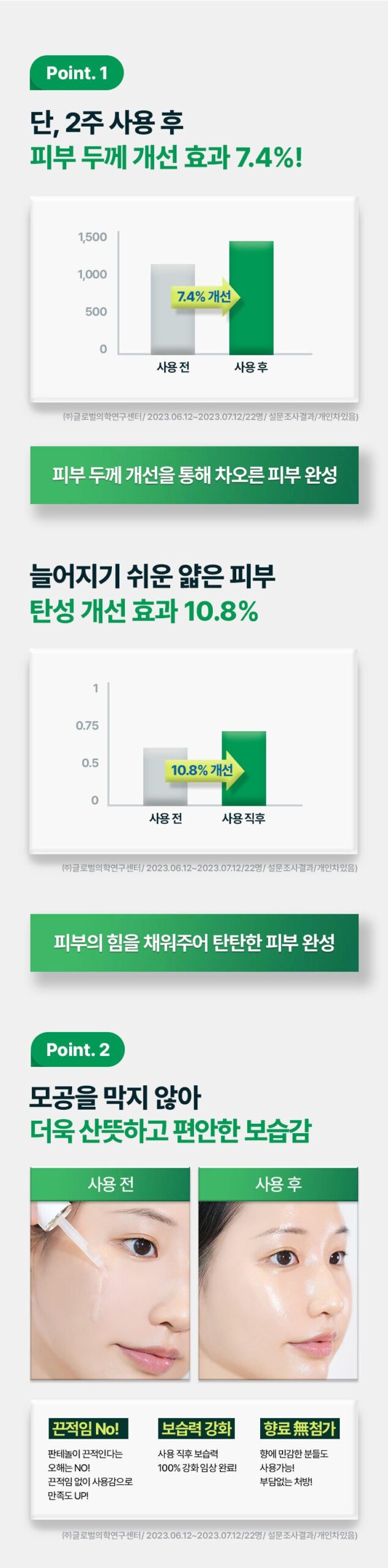 Skin thickness improvement by 7.4% and elasticity improvement by 10.8% after 2 weeks of use.