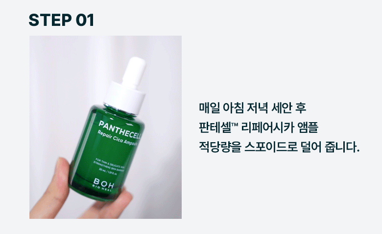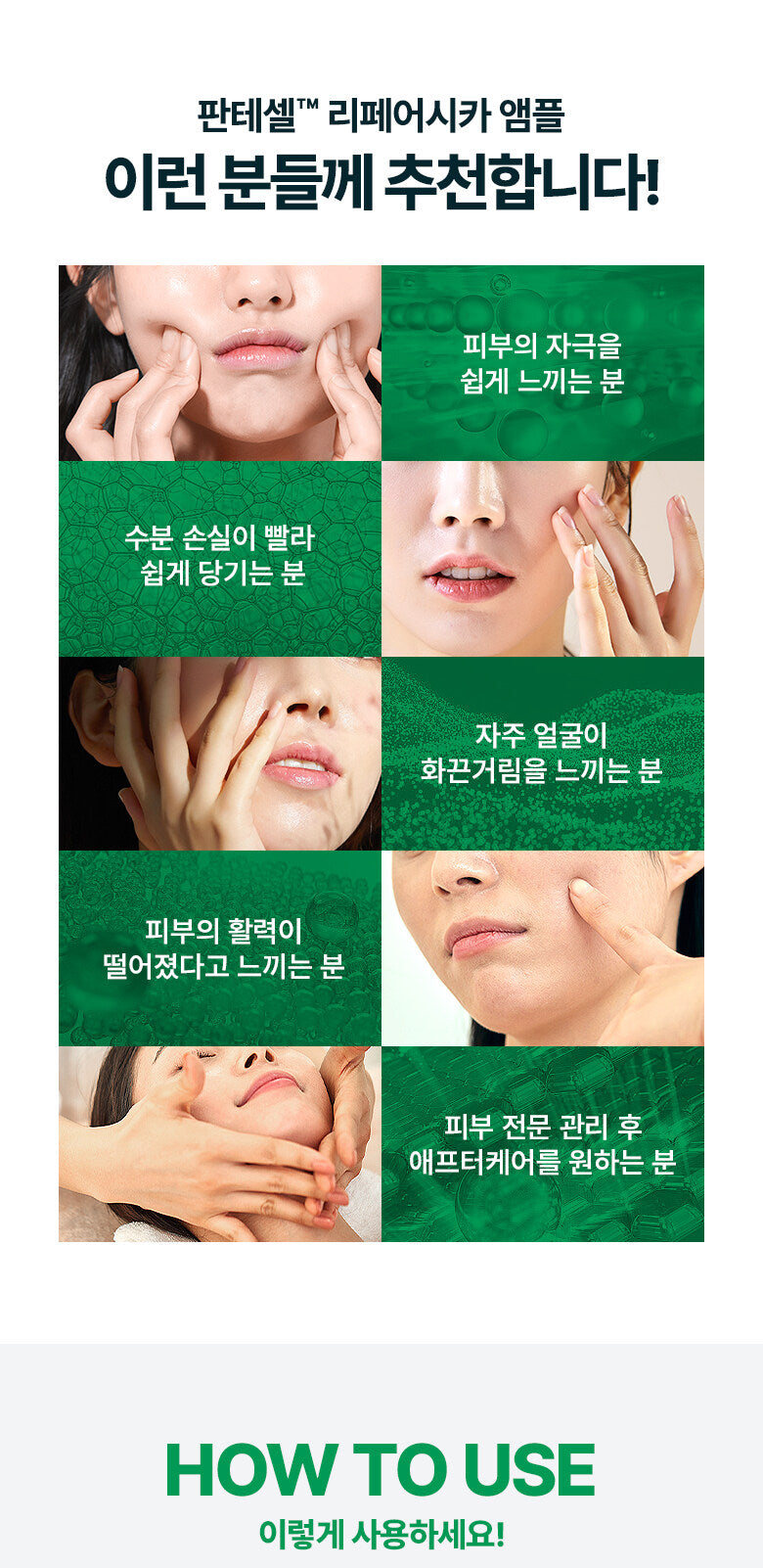 1. After cleansing in every morning and evening, take adequate amount of panthecel repair cica ampoule with a dropping pipette.