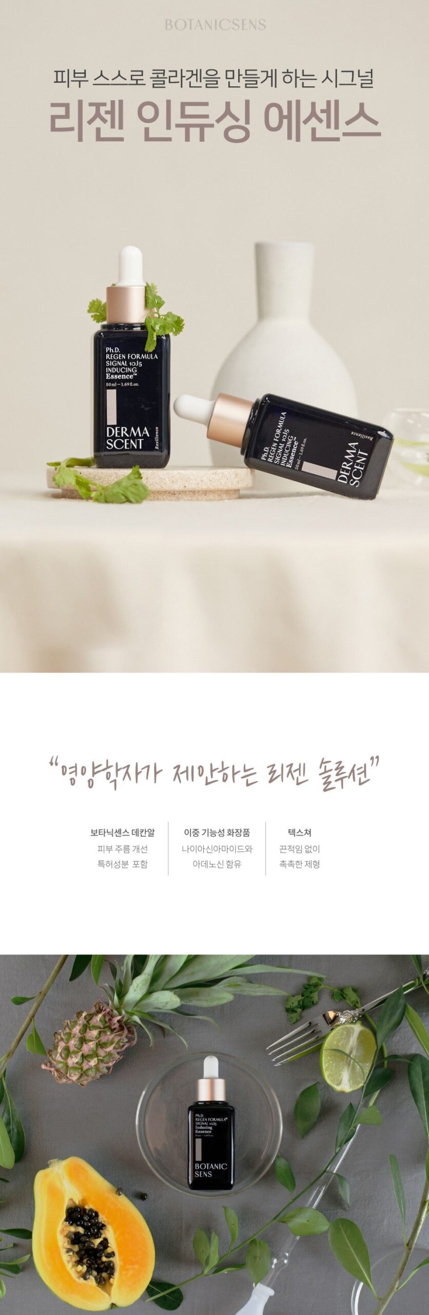 “Regen solution suggested by a nutritionist” Our unique blend, Botanic Sense decanal, includes patented ingredients specifically designed for skin wrinkle improvement.