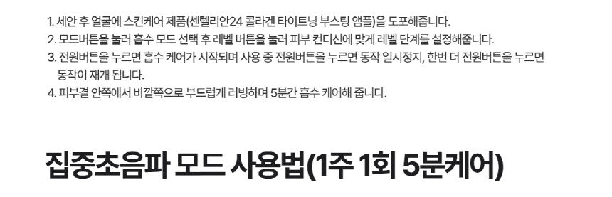- When using both the intensive ultrasound mode and absorption mode in the same week, always perform the intensive ultrasound care first, followed by the absorption mode. This sequence ensures optimal efficacy and skin benefits from both treatments.