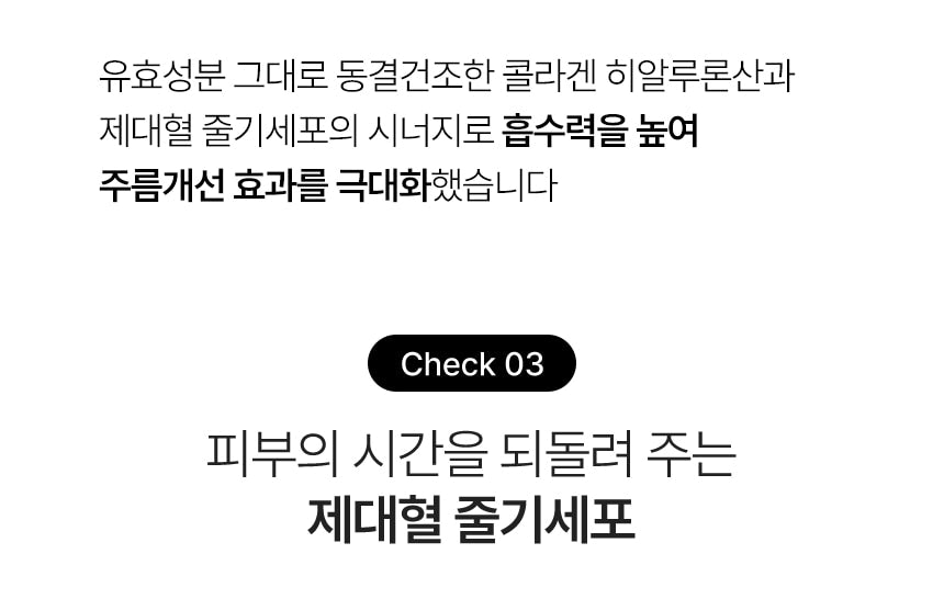 - The synergy of 100% freeze-dried collagen, hyaluronic acid, and umbilical cord blood stem cells boosts ingredient absorption.