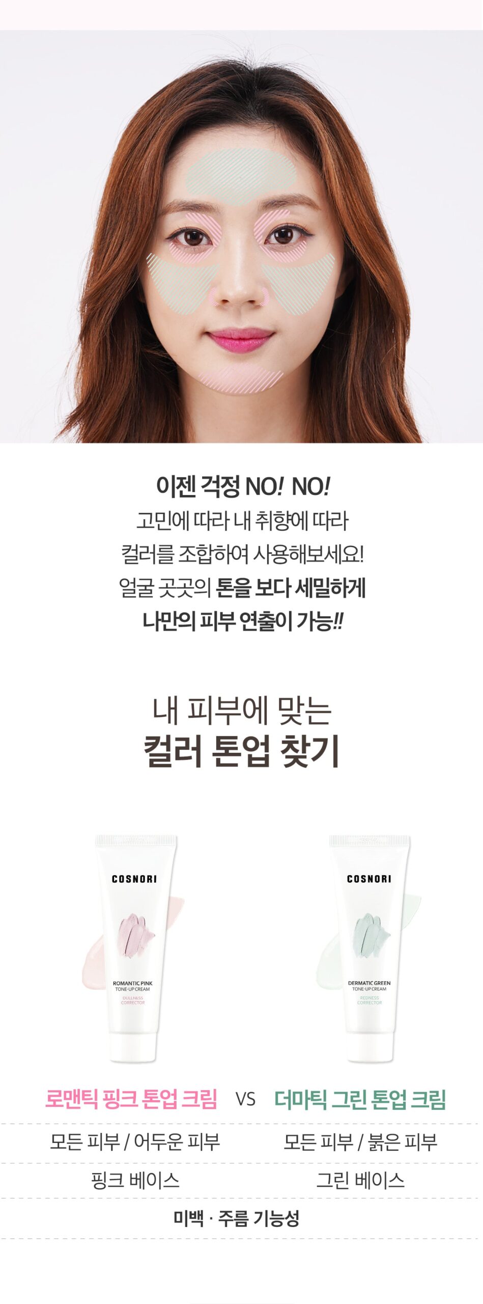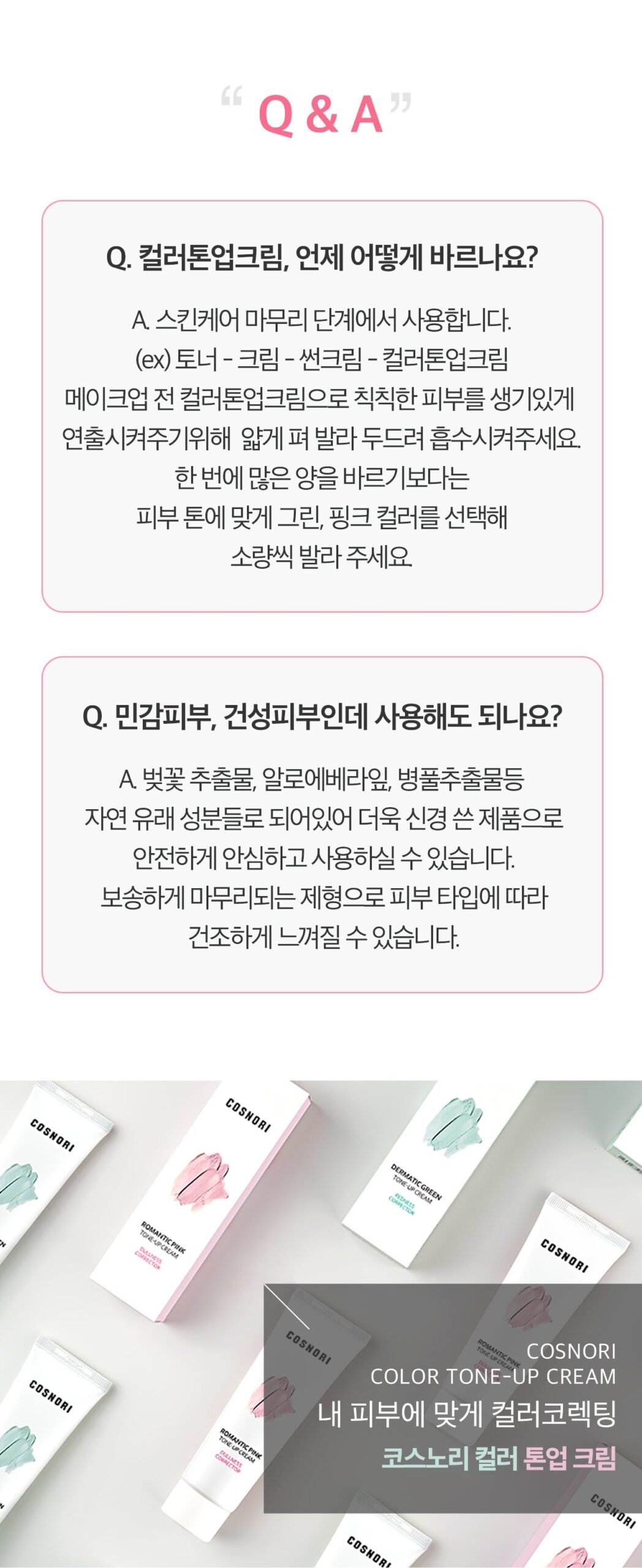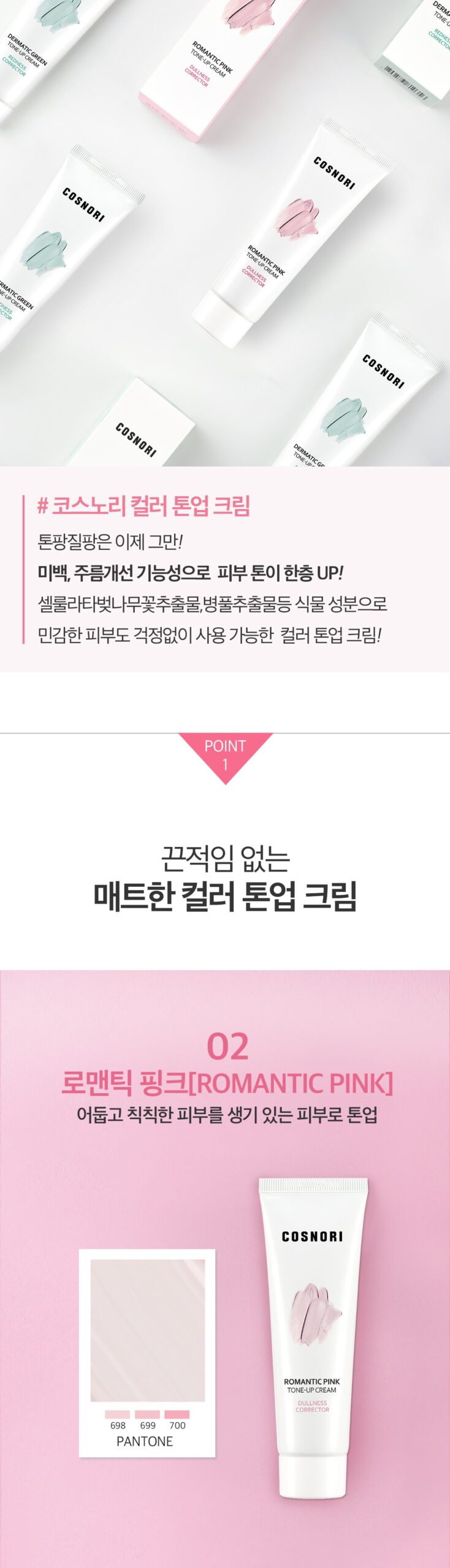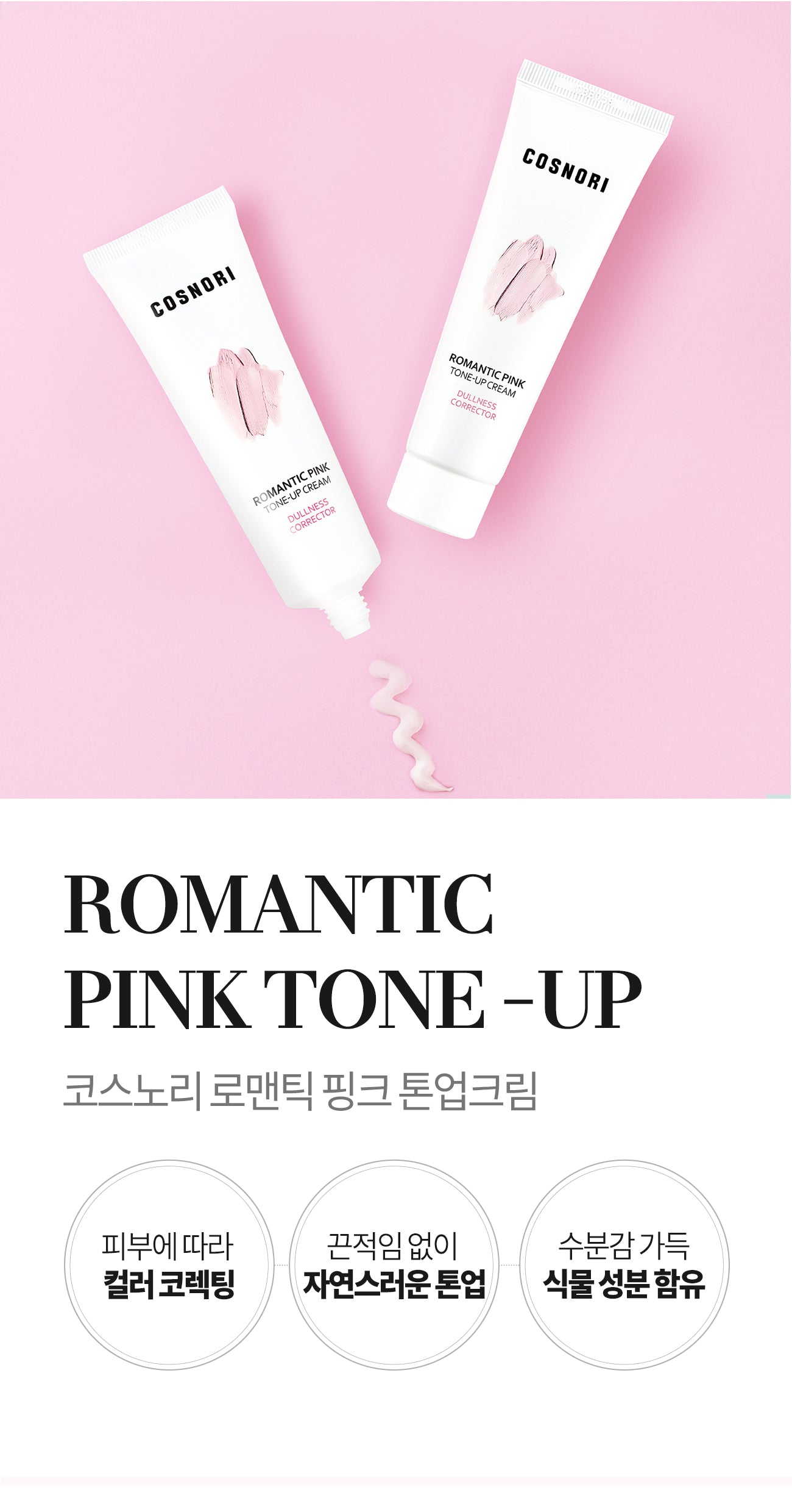 The COSNORI Romantic Pink Tone-Up Cream is a color-correcting product that adjusts skin tone for a natural, radiant look without stickiness. It’s formulated with hydrating plant-based ingredients such as aloe vera leaf extract, sodium hyaluronate, and centella asiatica extract. This cream is especially suited for dull and uneven skin tones, providing a brightening effect thanks to the niacinamide content, which helps inhibit melanin production and improves skin radiance.