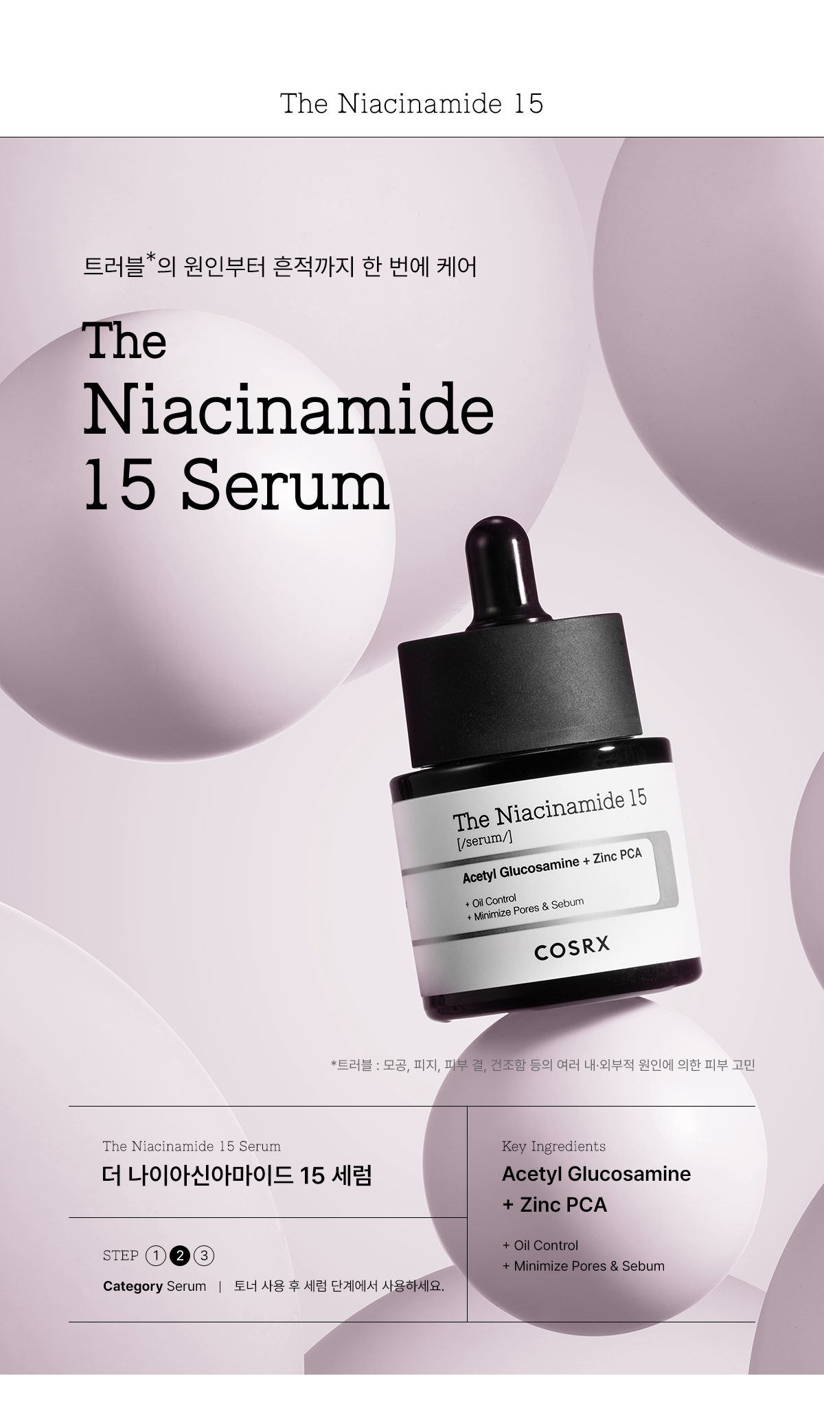 With an optimal combination of N_Acetylglucosamine, zinc P.A., and allantoin, the formulation helps to care for dead skin cells, remove sebum, and protect the skin.