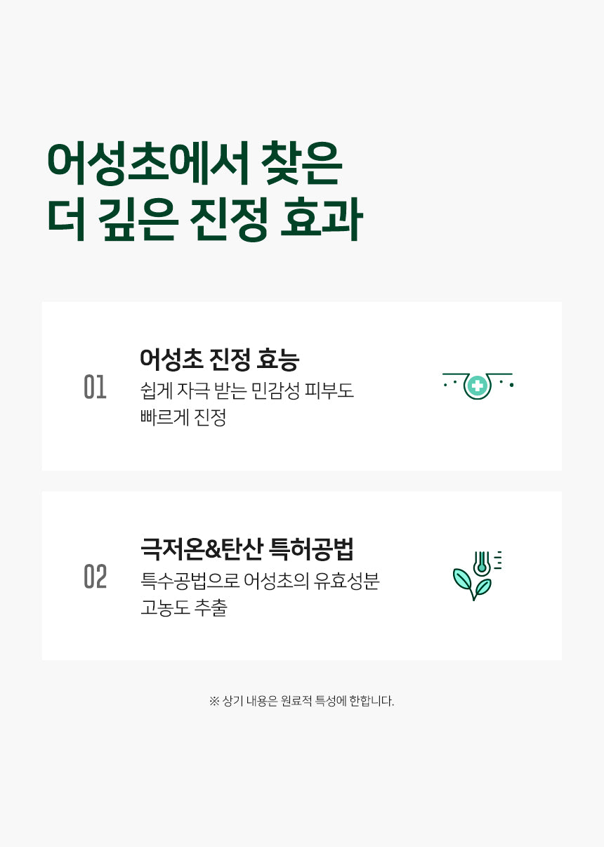 - Ultra-Low Temperature & Carbonic Acid Technique: Special extraction method for high-concentration active ingredients from Houttuynia Cordata.