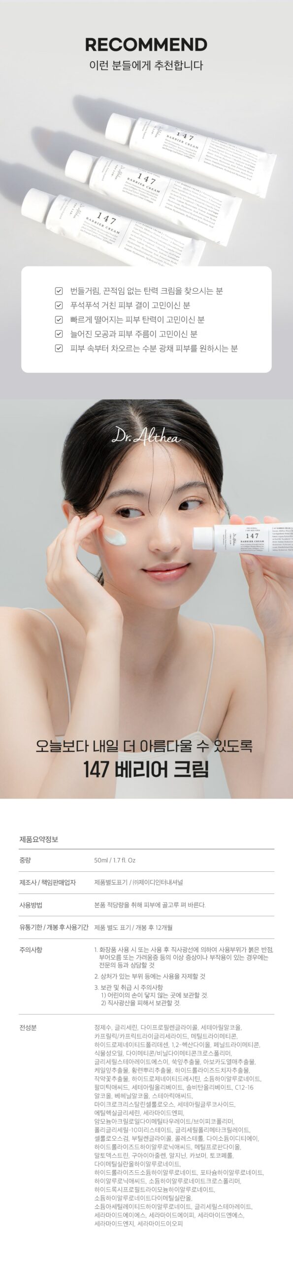 Dr. Althea 147 Barrier Cream features a low-irritation formula free from artificial fragrances and dyes. Dermatologically tested, it’s safe for even the most sensitive skin types, offering peace of mind with every use.