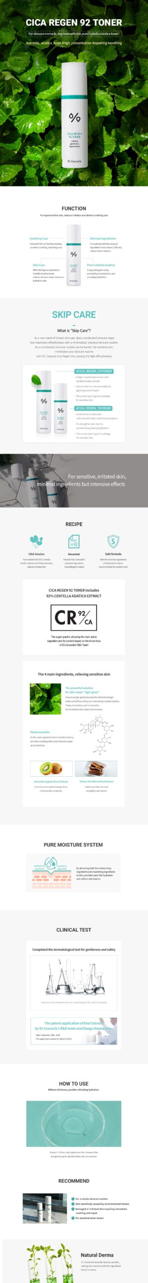 Initially, I approached the Dr.Ceuracle Cica Regen 92 Toner with skepticism. Many skincare products claim miraculous benefits yet rarely deliver results without some underlying irritation or unpleasant sensation. To my surprise, after applying it during an arid summer in Chicago, what emerged was refreshingly smooth skin and a genuine sense of calm that enveloped me—definitely not just wishful thinking! Enriched heavily with Centella Asiatica (a proud ally of troubled dermises), its texture glided softly across my face and left no tacky residue behind. Day by day there’s a visible softness I’ve embraced fully now—a peace born from nurturing self-care rooted deeply within nature itself.