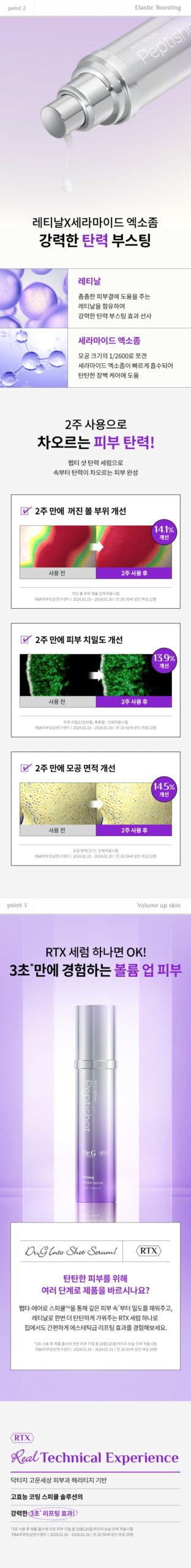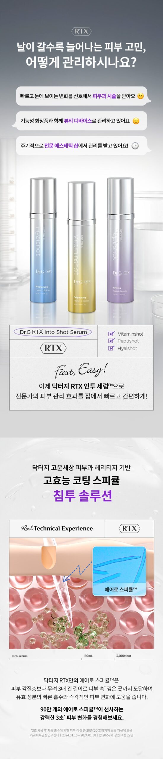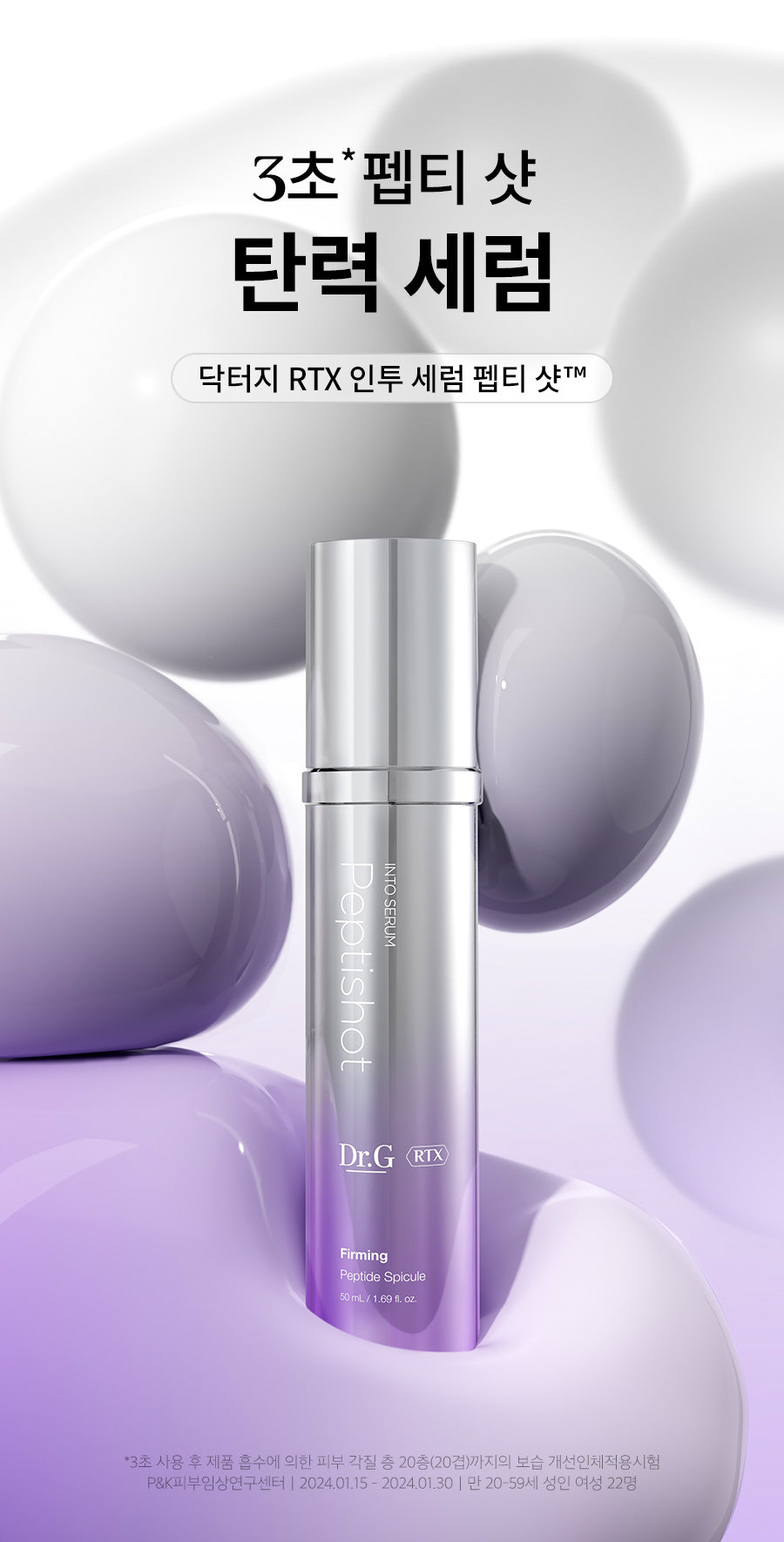 Introducing Dr.G RTX Into Serum Peptishot, a revolutionary skin care solution engineered with cutting-edge technology to deliver visible skin transformations. Formulated with 900,000 aero-spicules, this serum penetrates the skin deeply within just three seconds, offering instant enhancements in skin texture and appearance.