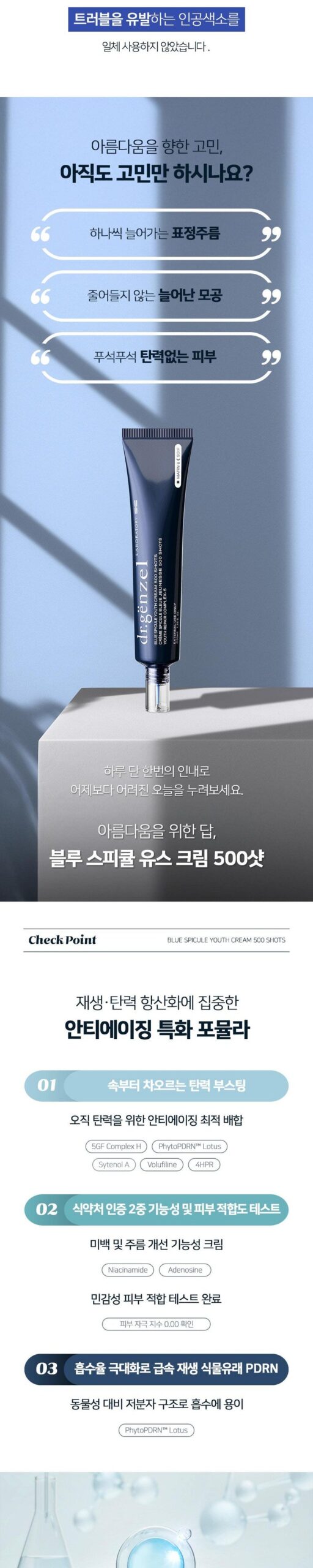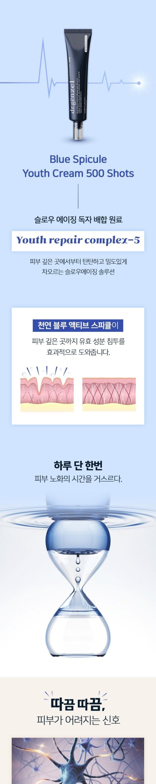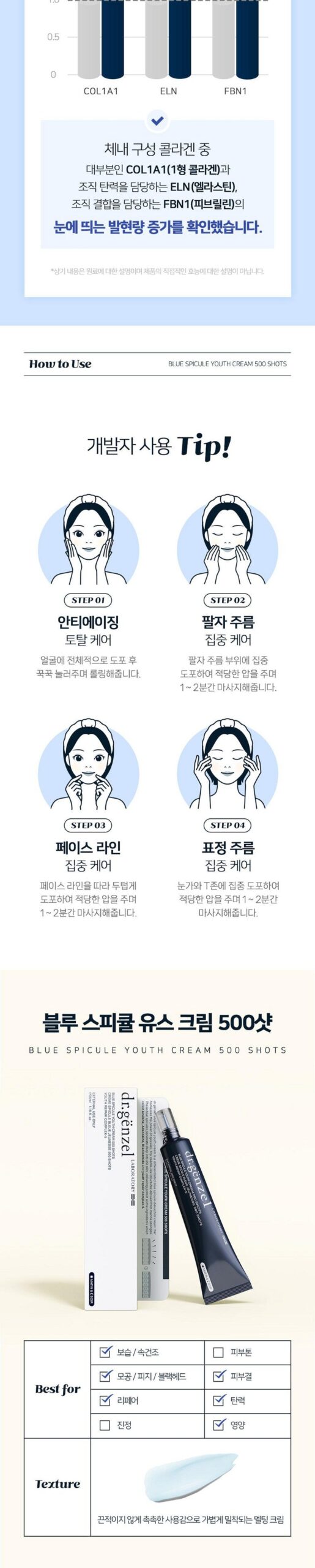 So I just started using this dr.genzel Blue Spike Youth Cream and honestly, the texture is something else! It’s kinda thick but glides on like butter – you know? When you first apply it, there’s this tingly sensation that makes you feel like it’s really getting into your skin. The micro-needles vibe isn’t at all uncomfortable; it’s more refreshing than anything! Once absorbed, my face feels plump yet super smooth without any greasy residue. It’s got a unique richness that feels luxurious for sure. Can’t wait to see how it works in the long run!