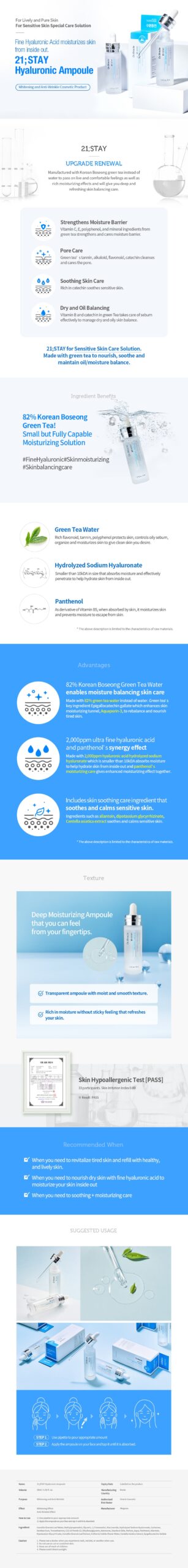 2,000ppm Ultra Fine Hyaluronic Acid and Panthenol Synergy: Contains 2,000ppm of hyaluronic acid in the form of hydrolyzed sodium hyaluronate for deep hydration. Combined with panthenol, it offers a superior moisturizing effect.