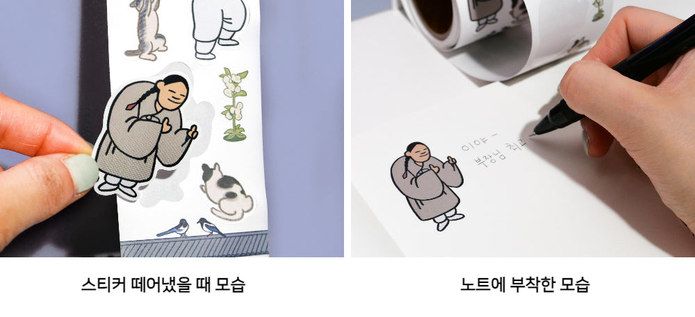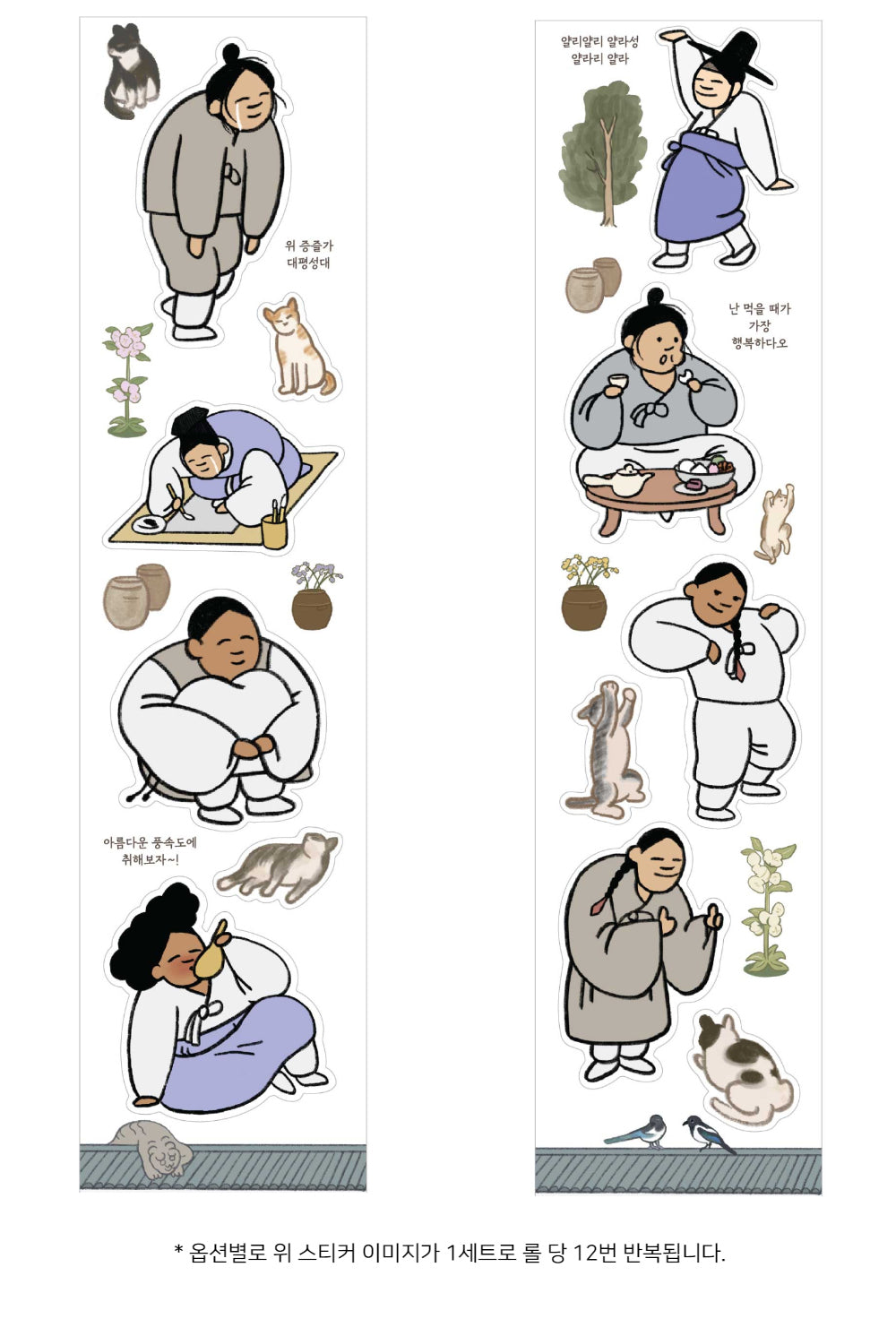 Unroll a visual journey through history—each roll of this decorative sticker unveils a set of genre painting-inspired characters, repeated 12 times for lasting enjoyment. Whether you’re decorating journals, laptops, or gifts, these removable stickers add a delightful touch of Korean heritage and artistry.