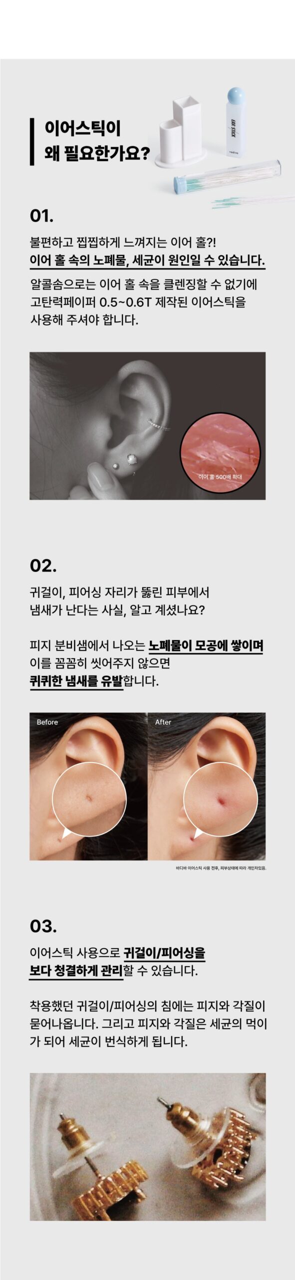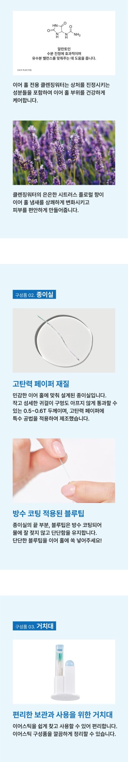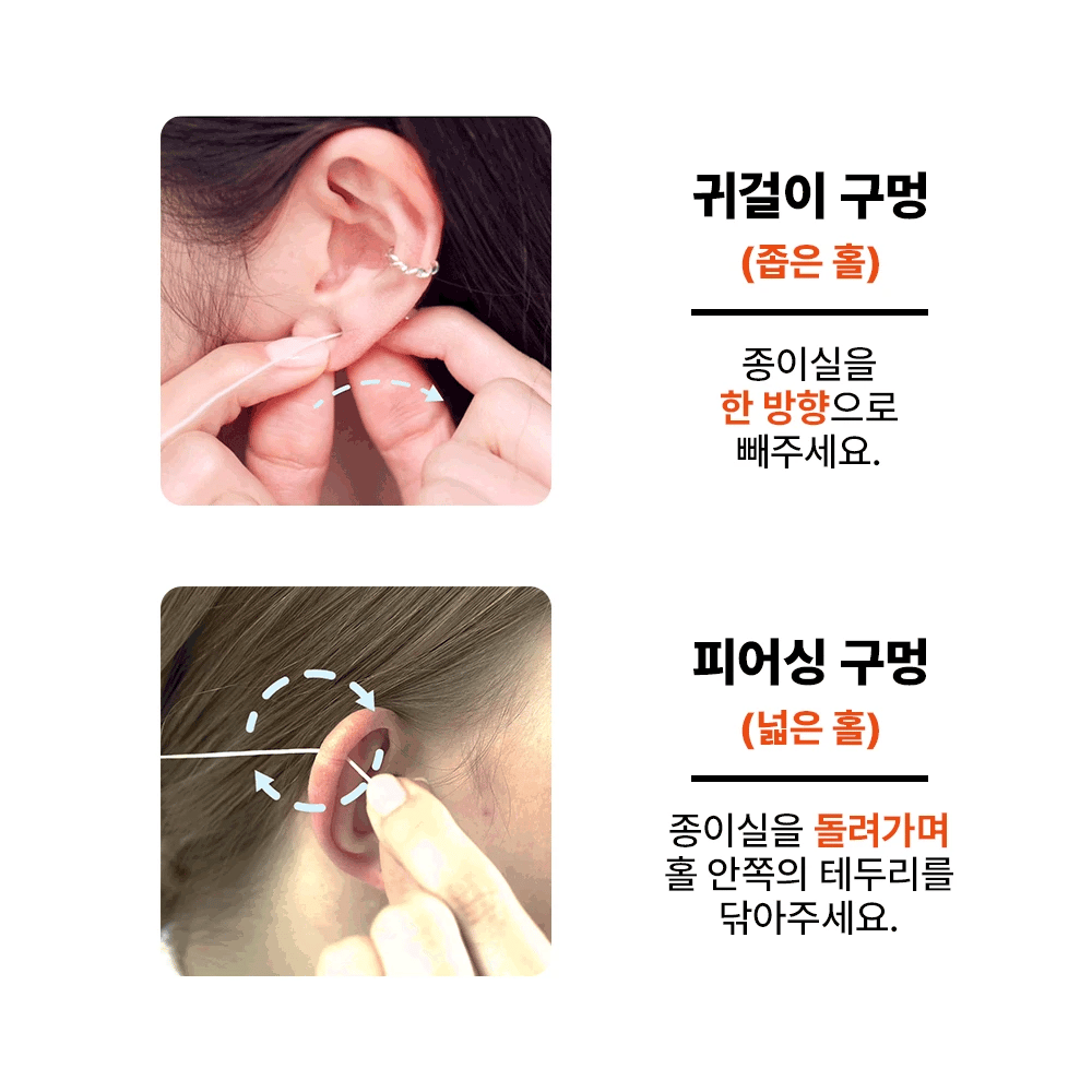 The blue tip at the end of the paper thread is waterproof coated, ensuring it remains firm and does not absorb water during use. This allows for easy insertion into the piercing hole, ensuring a smooth and hassle-free cleansing experience. Simply insert the firm blue tip into the ear hole and let the thread work its magic.