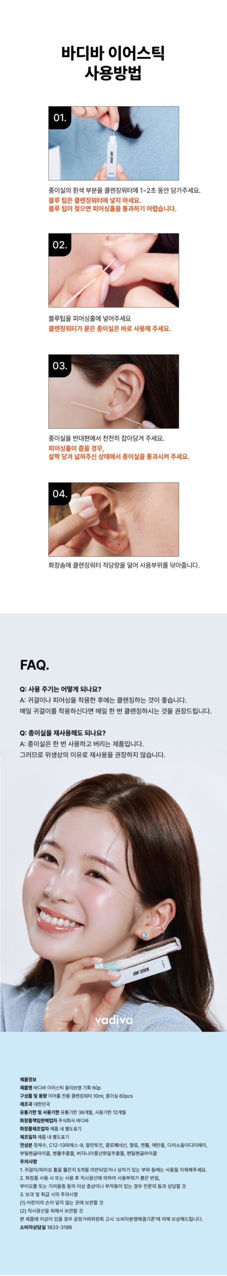 Experience effective and gentle deep cleansing for your earrings and piercing holes with the VADIVA Ear Stick. Designed to provide a refreshing finish, this innovative ear stick thoroughly cleanses inside the ear holes, ensuring a fresh and hygienic feeling.